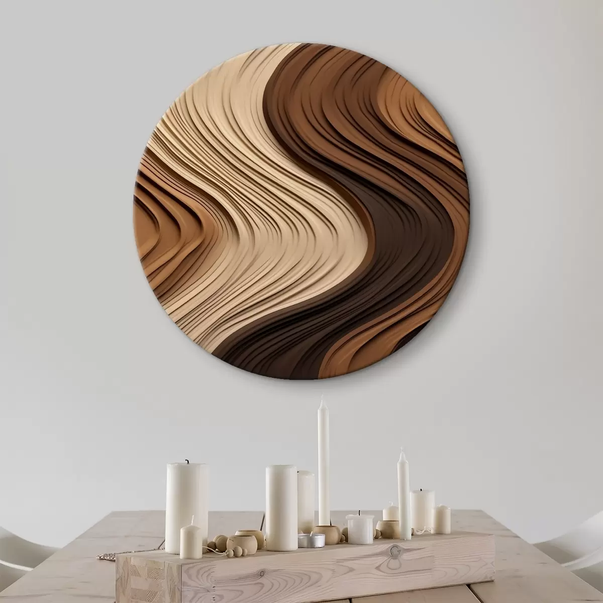 Ronde schilderijen Verticale golven in warme beige-bruine lagen r45905