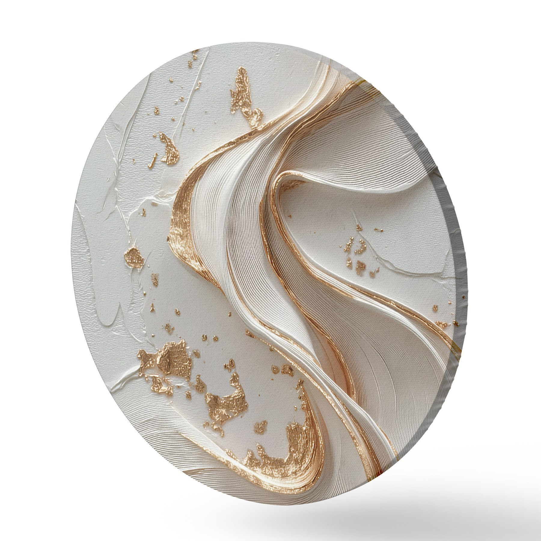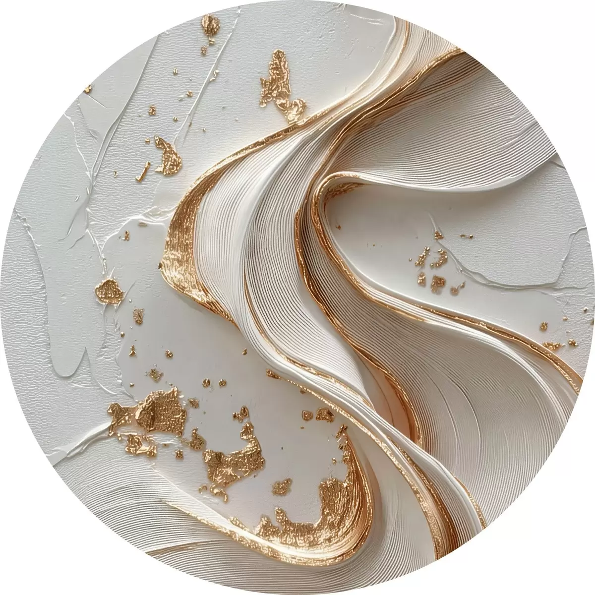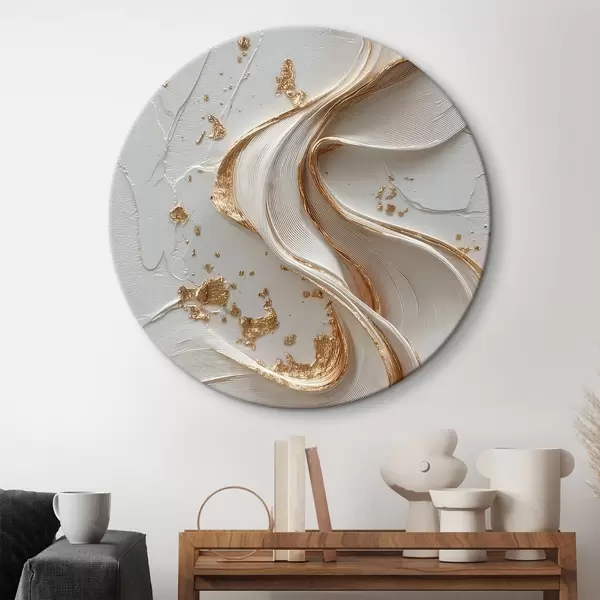 Ronde schilderijen Wit-gele gestructureerde streken met metallic accenten r45906