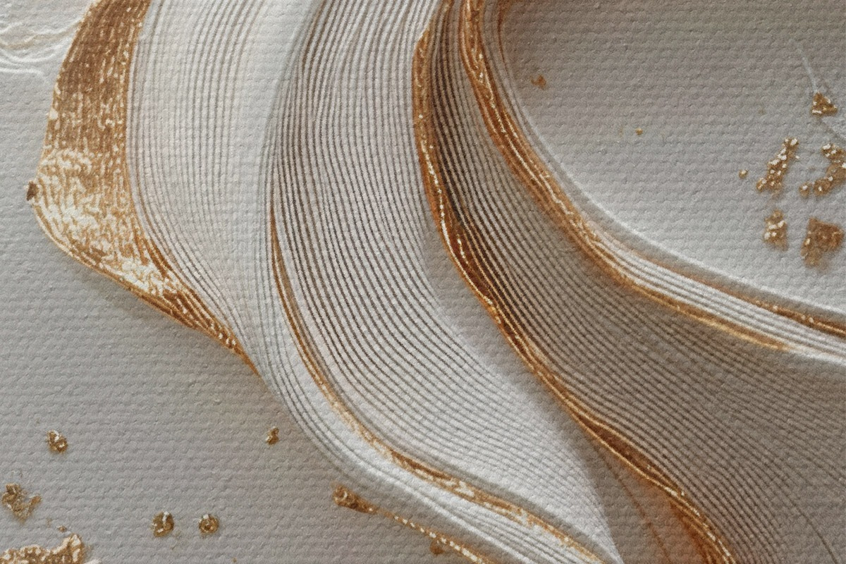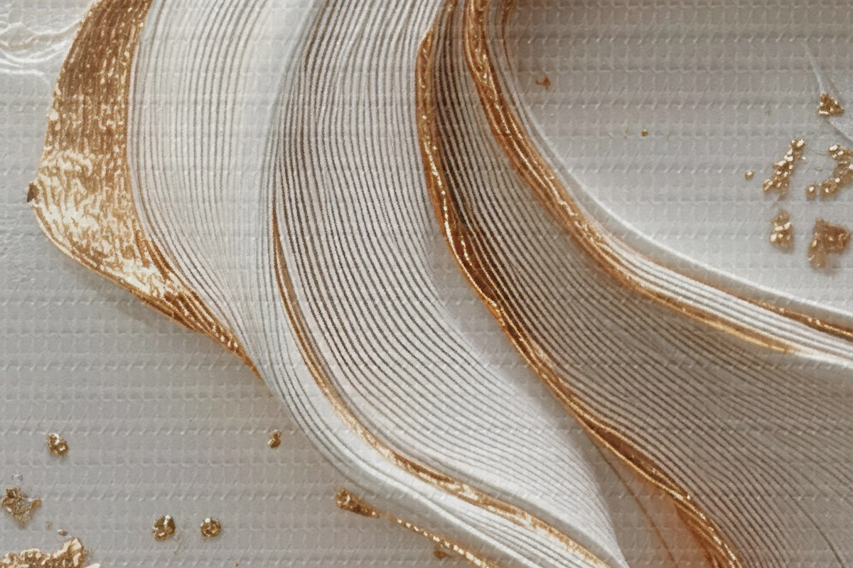 Afbeelding Wit-gele gestructureerde streken met metallic accenten Nr r45906