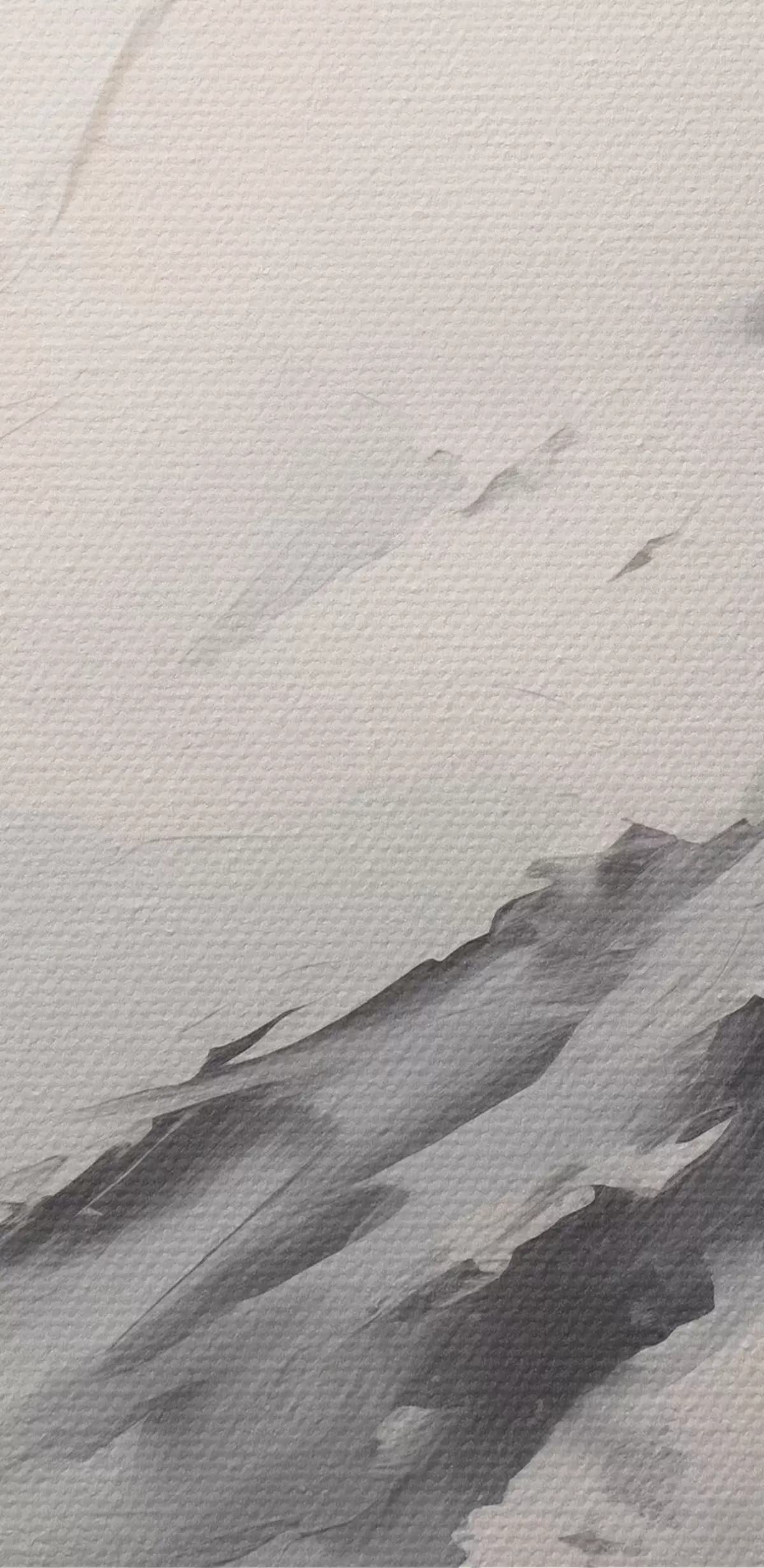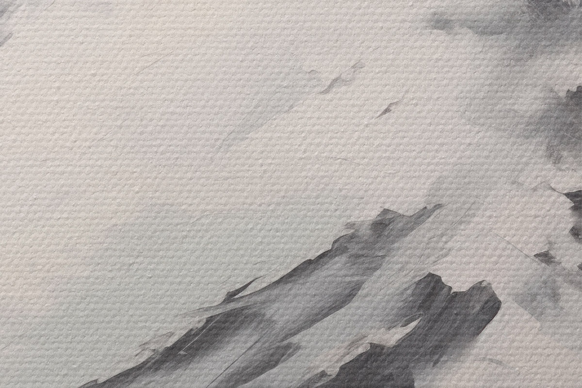 Afbeelding Besneeuwde bergtoppen met grijze schaduwen, grijze lucht, penseelstreken, gestructureerd, minimalistisch Nr r45932