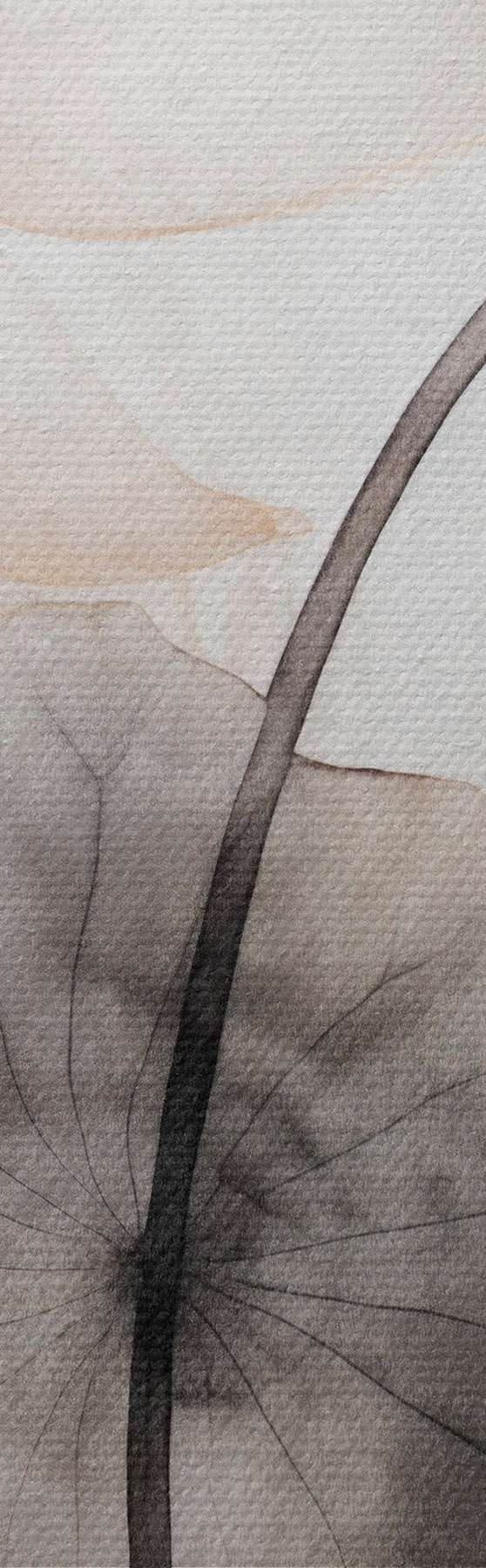 Afbeelding Witte lotusbloemen met textuur en donkere bladeren, lichte achtergrond, minimalistisch ontwerp Nr r45937