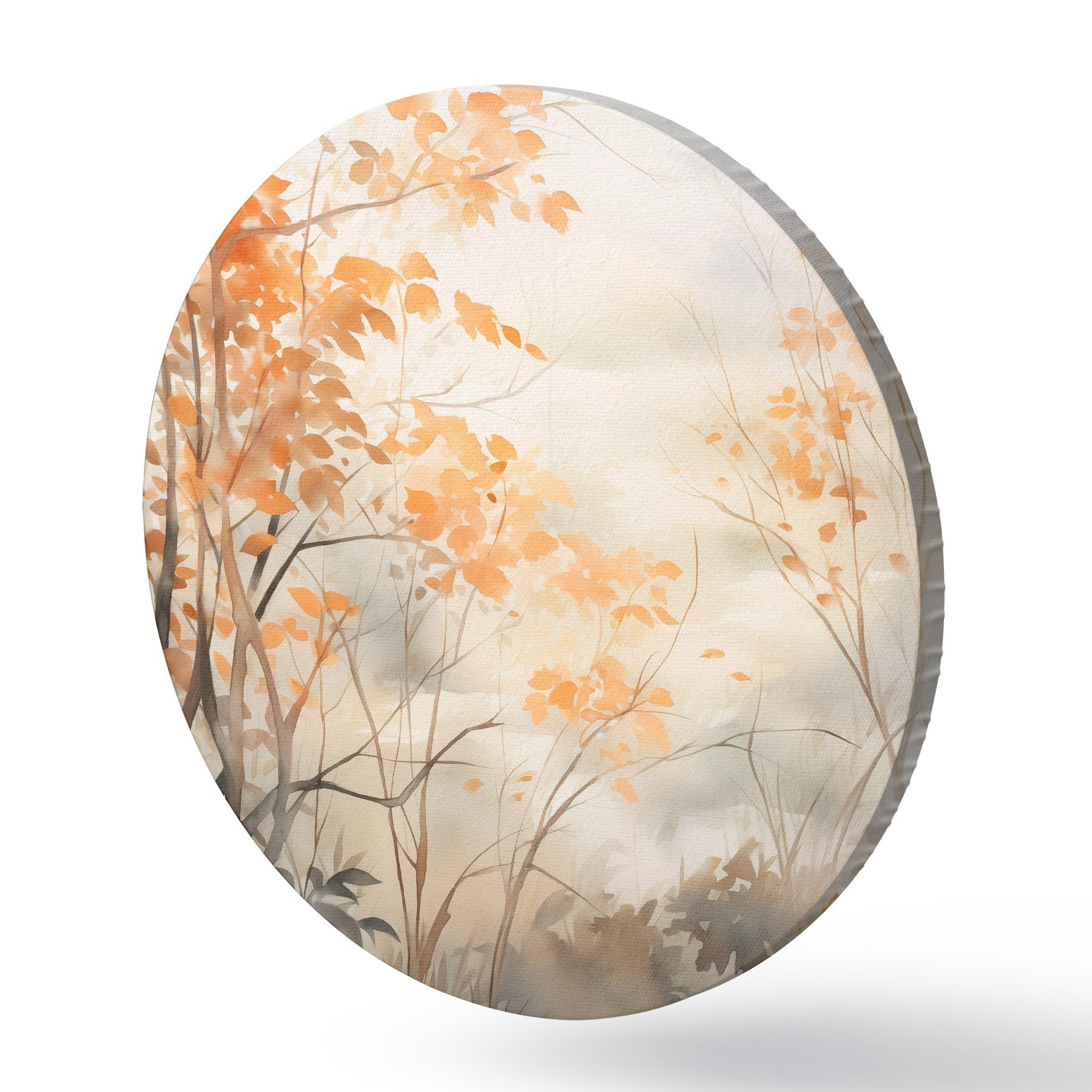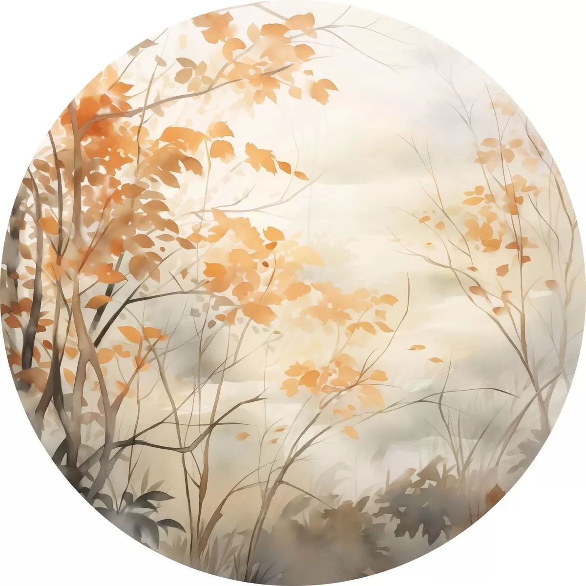 Ronde schilderijen Herfstbomen met oranje bladeren en takken, zachte aquarelstijl, delicate penseelstreken r45941
