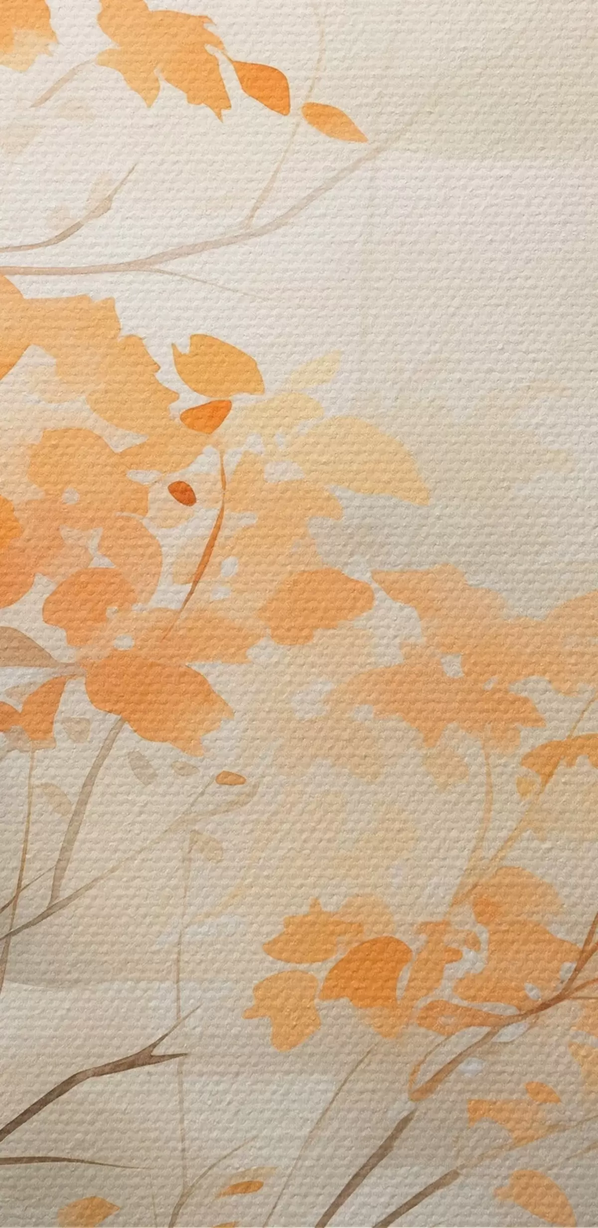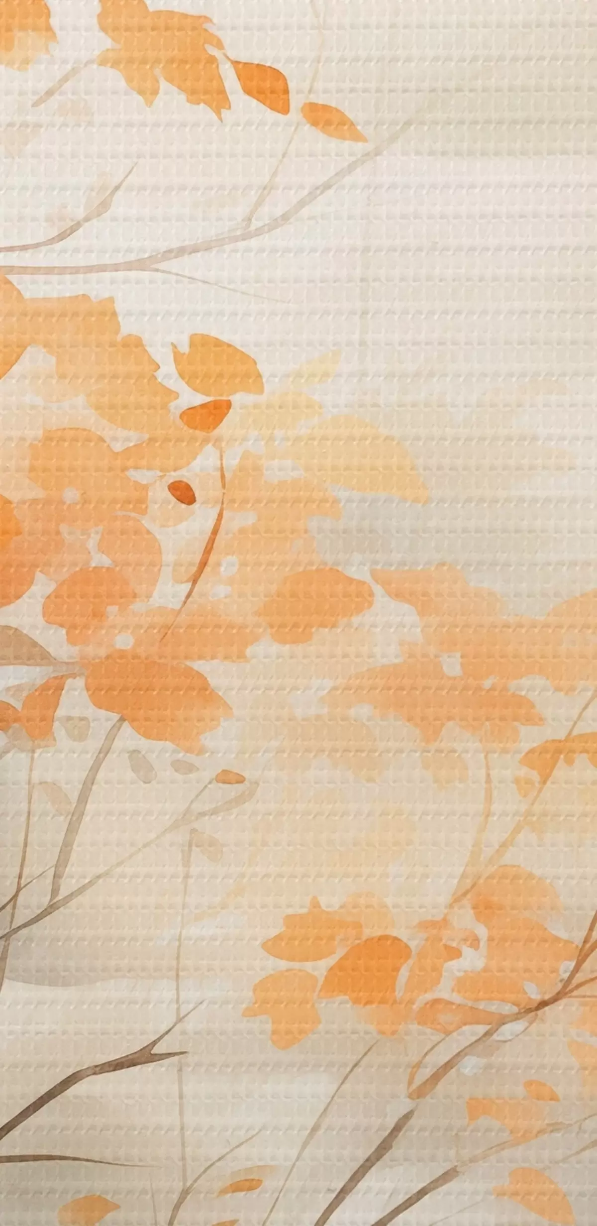 Afbeelding Herfstbomen met oranje bladeren en takken, zachte aquarelstijl, delicate penseelstreken Nr r45941