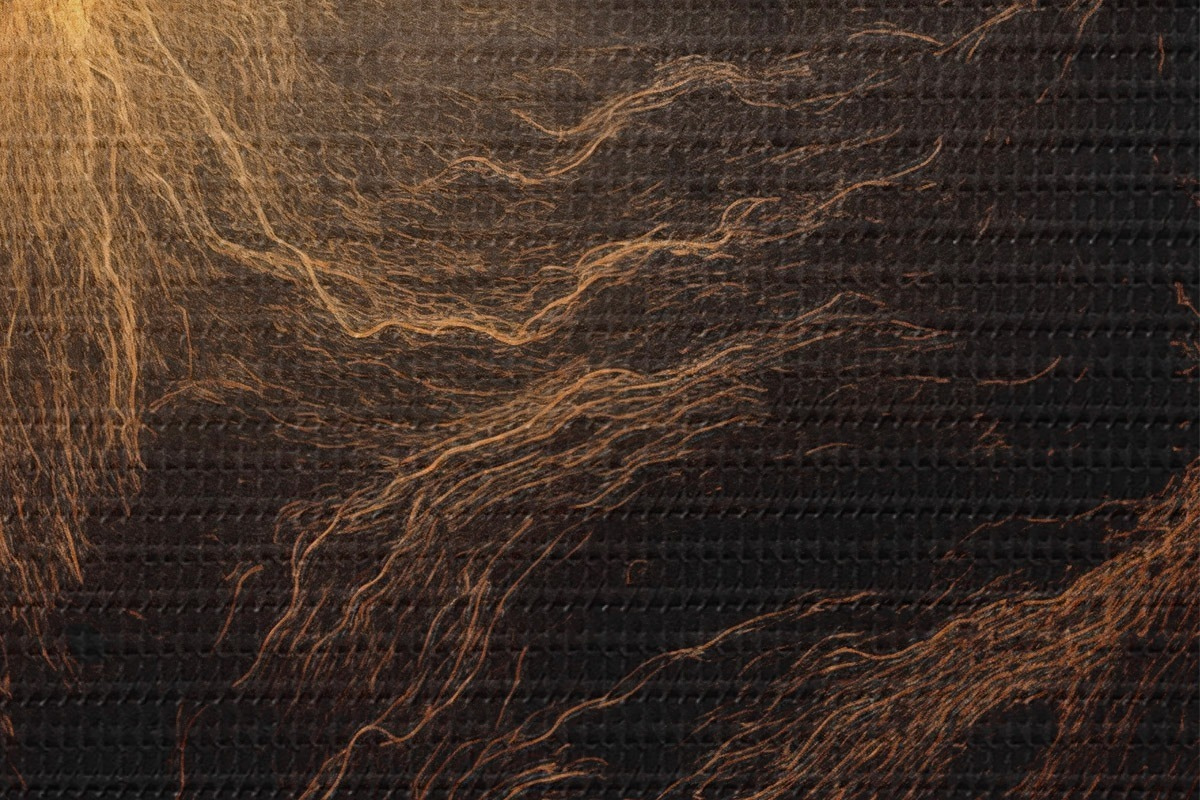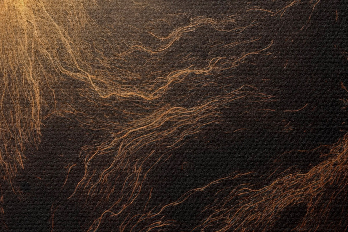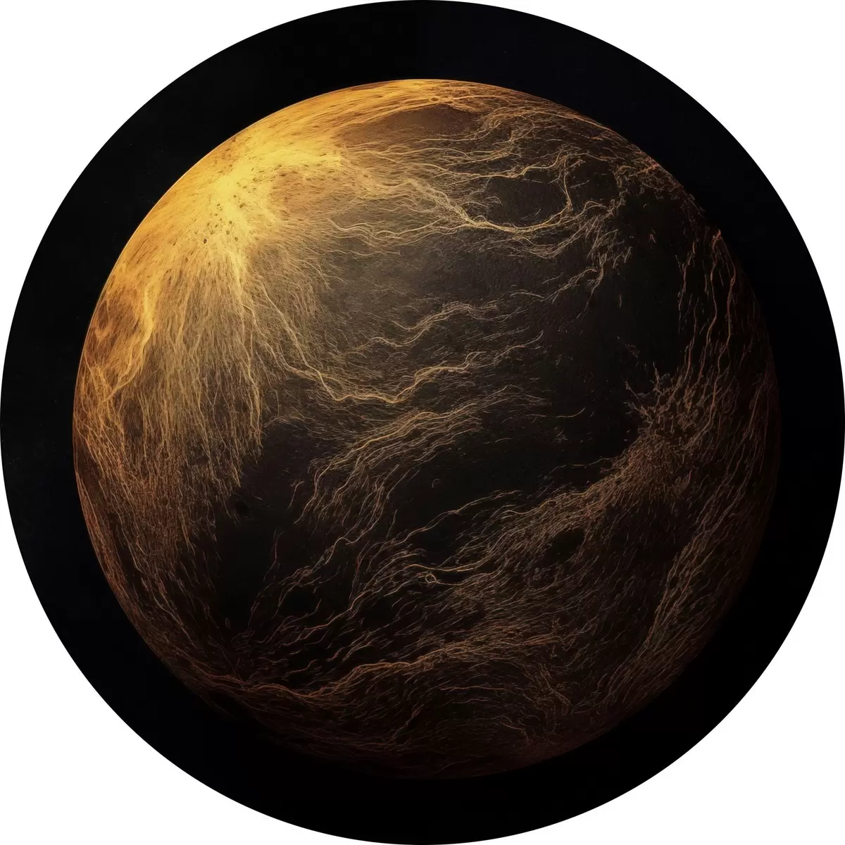 Afbeelding Abstracte planeet met oranje aderen tegen een zwarte ruimteachtergrond, moderne minimalistische kunst Nr r45943