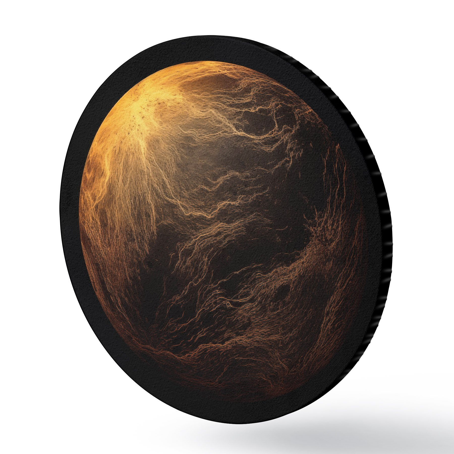 Ronde schilderijen Abstracte planeet met oranje aderen tegen een zwarte ruimteachtergrond, moderne minimalistische kunst r45943