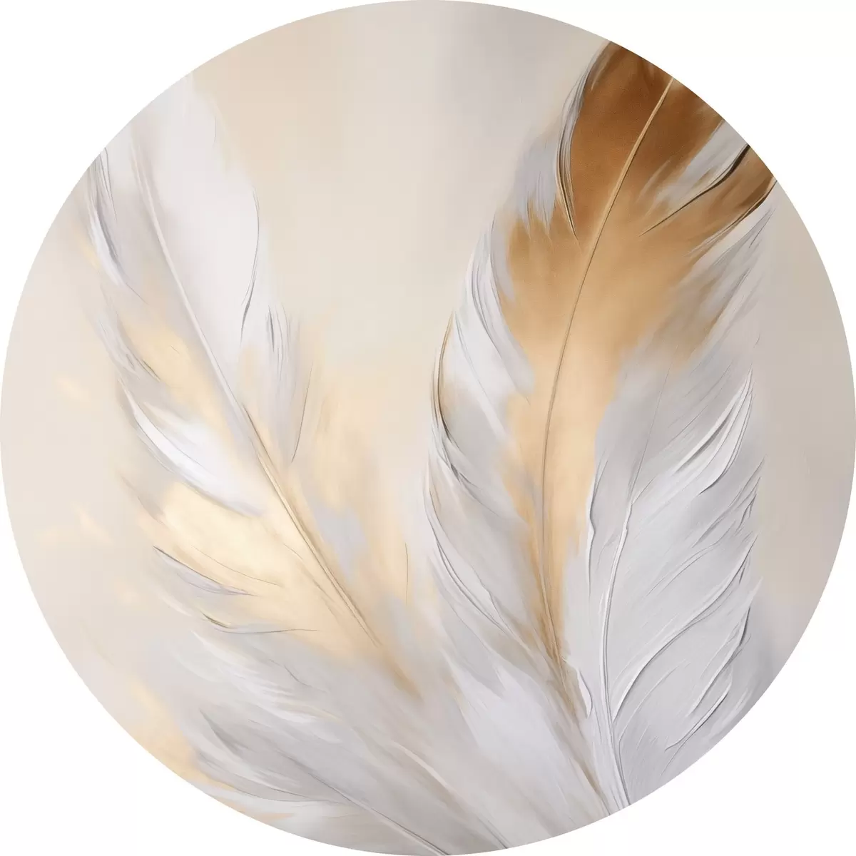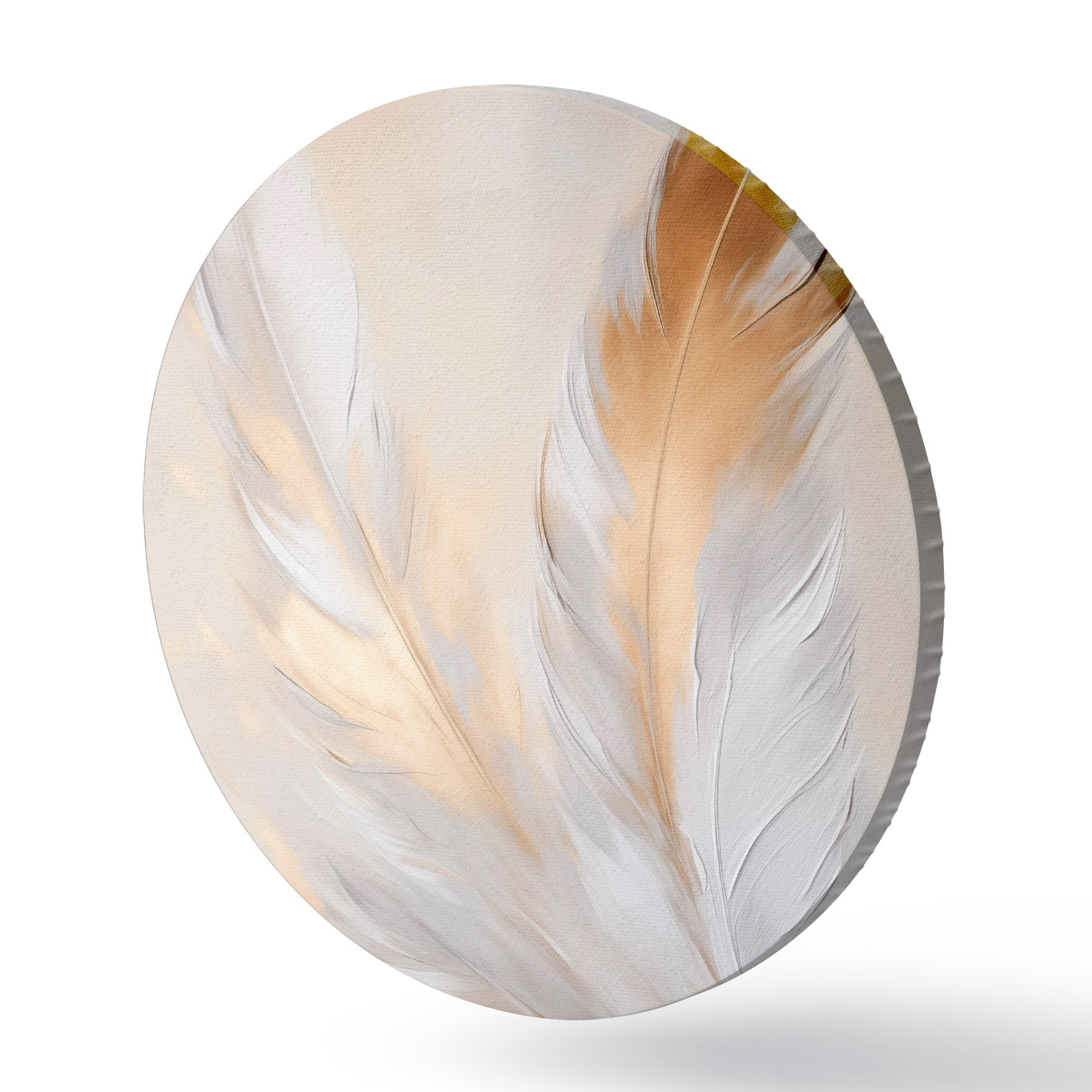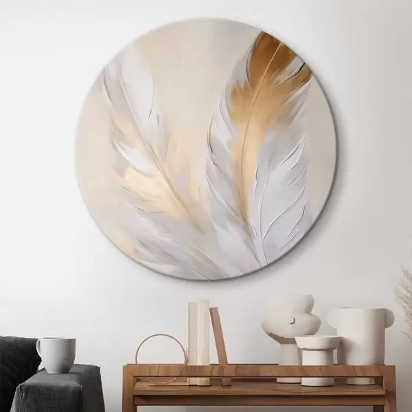Ronde schilderijen Veren met oranje accenten, zachte verlichting, minimalistische compositie met textuur, moderne kunst r45944