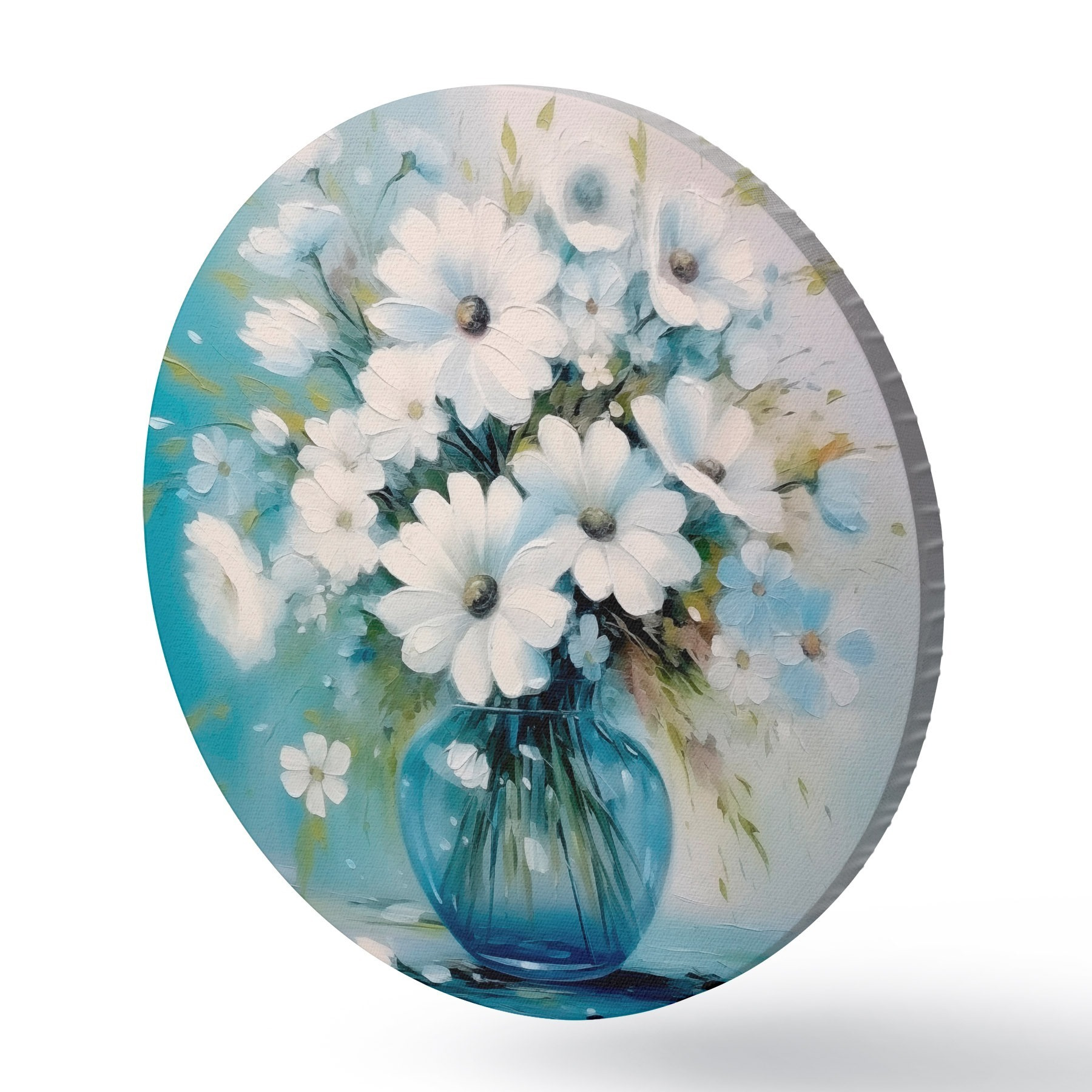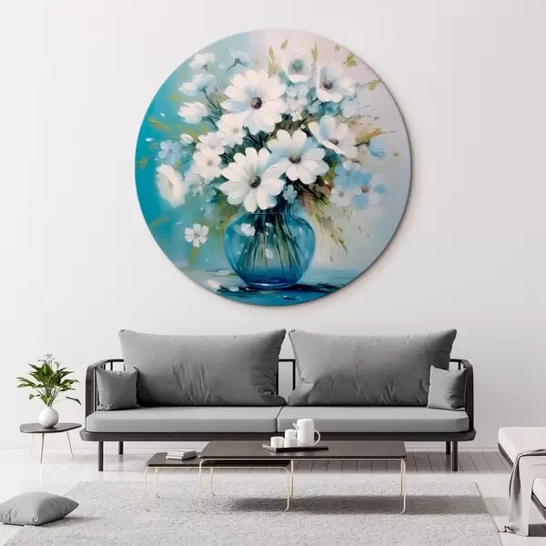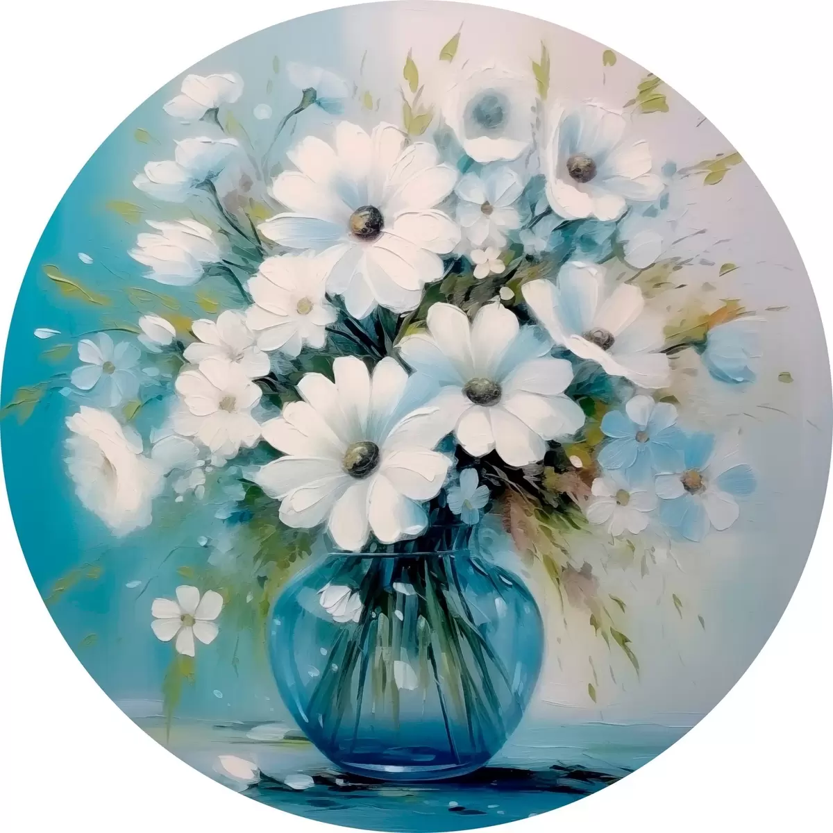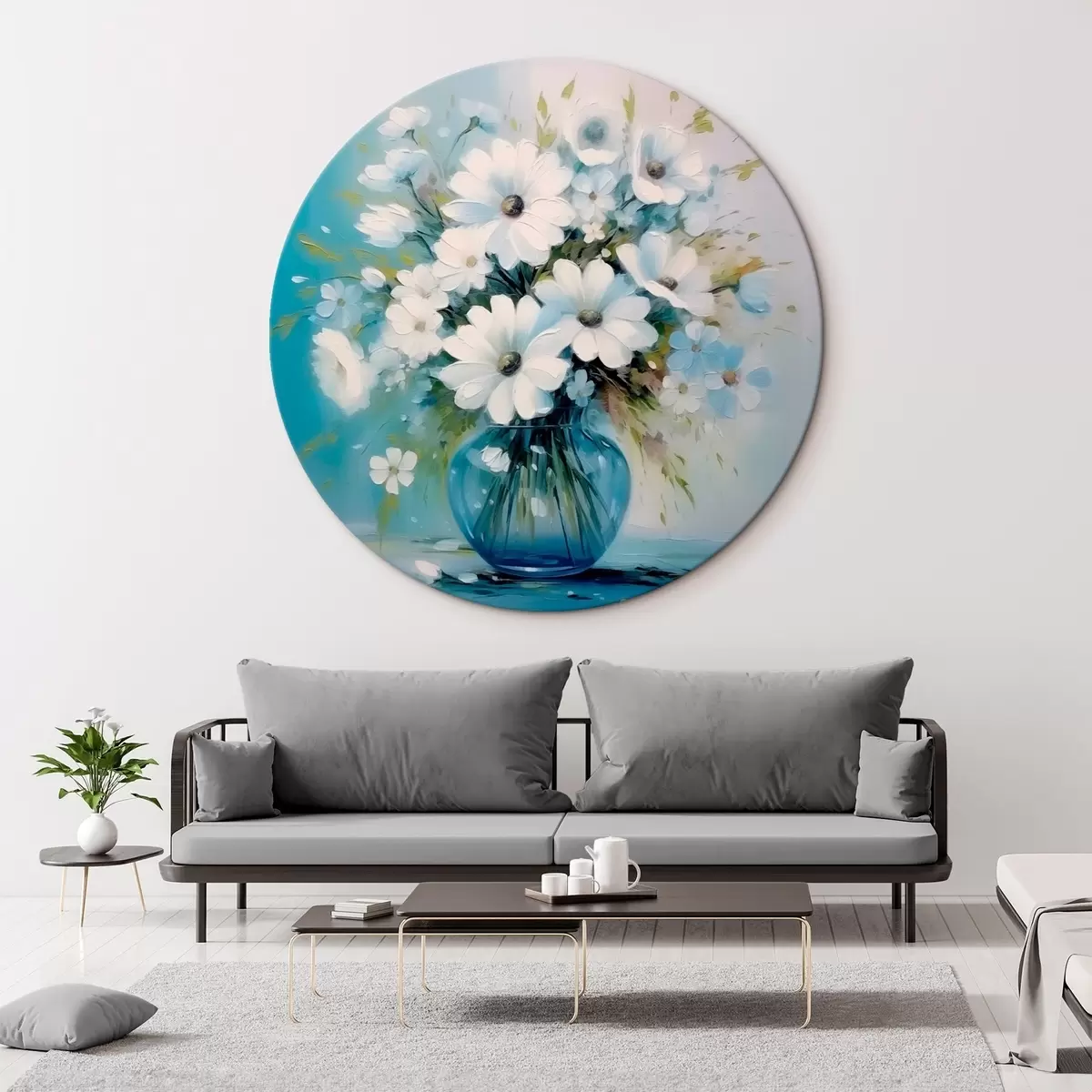 Ronde schilderijen Boeket madeliefjes in een blauwe vaas r45959