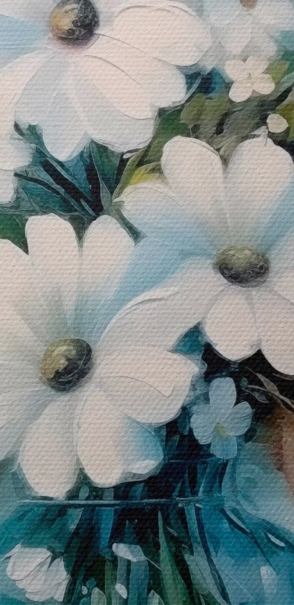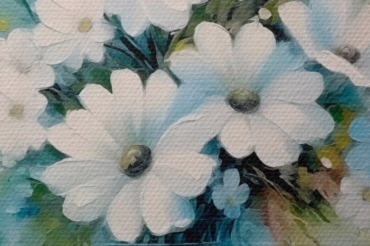 Afbeelding Boeket madeliefjes in een blauwe vaas Nr r45959