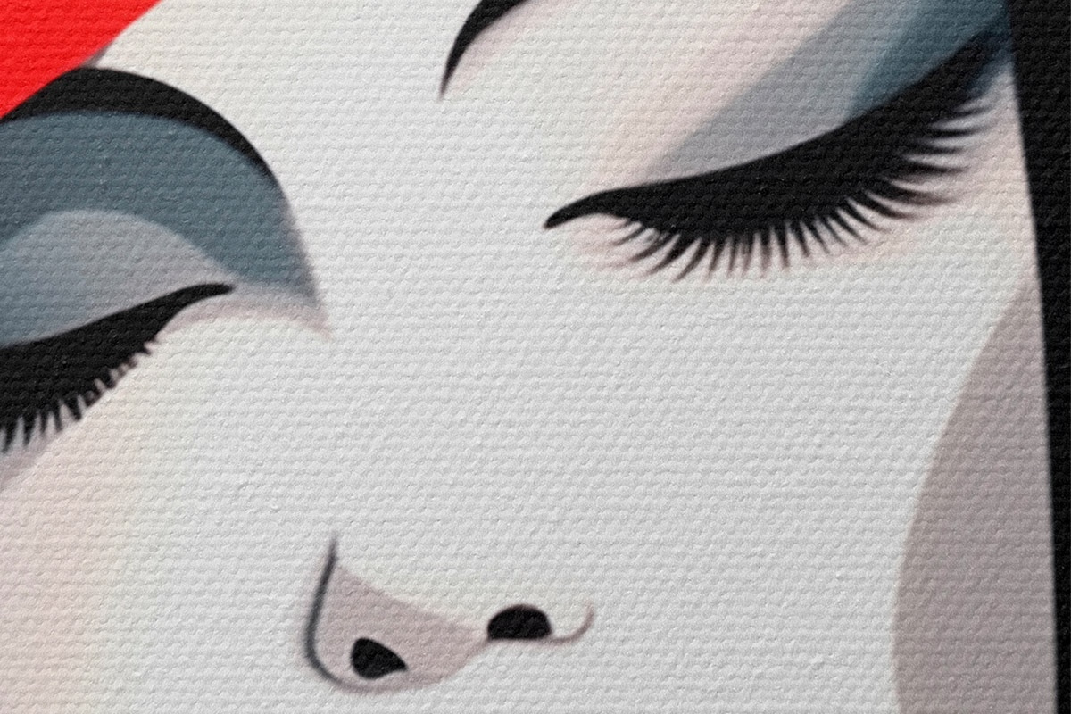 Om het doek op te spannen op spielatten zonder de afbeelding te beschadigen, gebruiken we gespiegeld beeld.