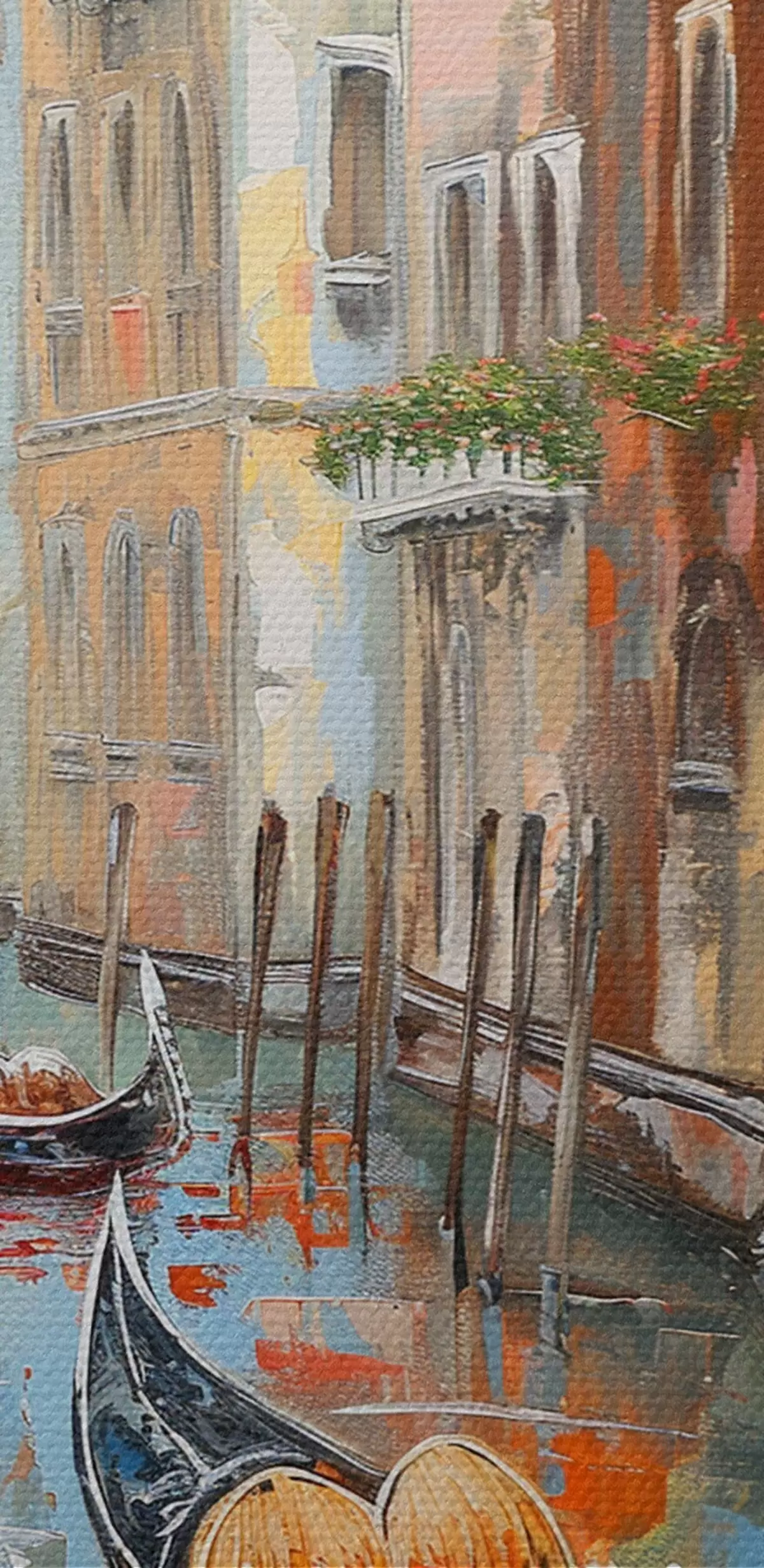 Het schilderij kan direct na ontvangst worden opgehangen. Het schilderij wordt opgespannen op een 2 cm breed houten spieraam.