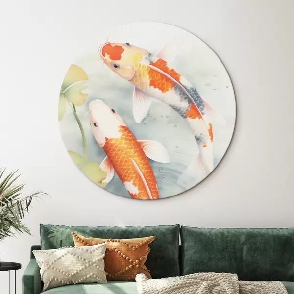 Ronde schilderijen Twee prachtige vissen in een vijver r46086