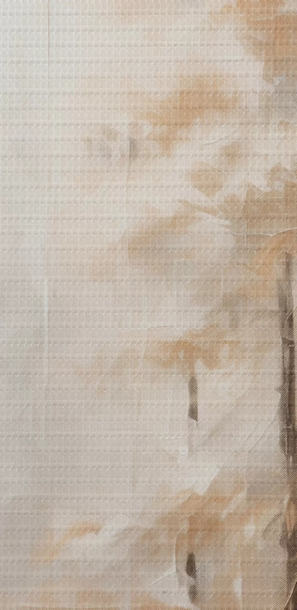 De fijne weving van draden op dit doek lijkt op het oppervlak van professionele schildersdoeken.