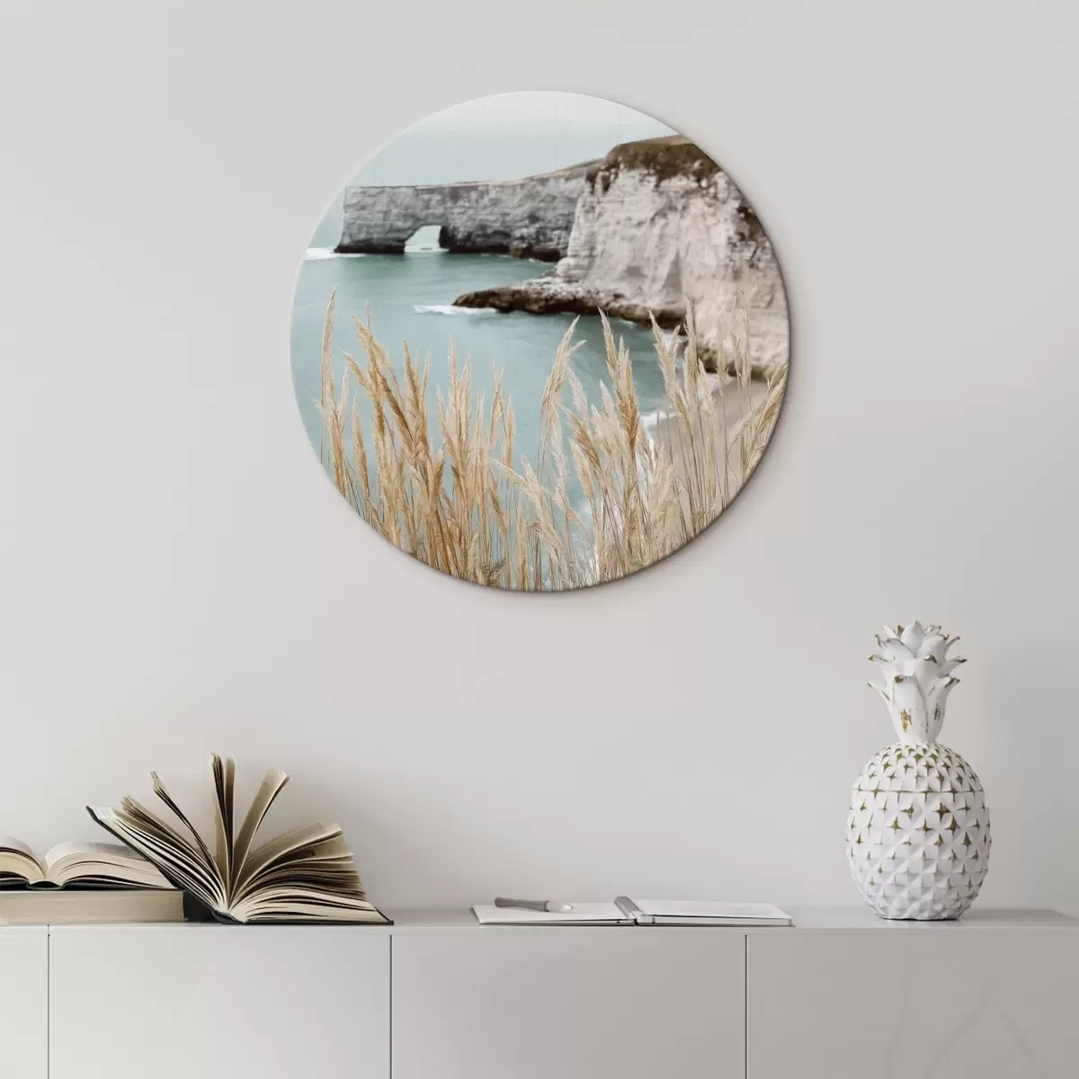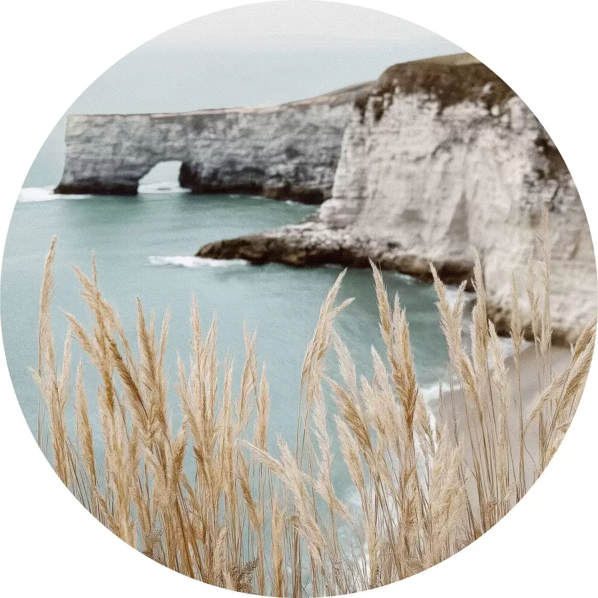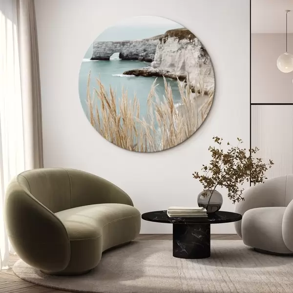 Ronde schilderijen Kustkliffen met riet op de voorgrond r46141