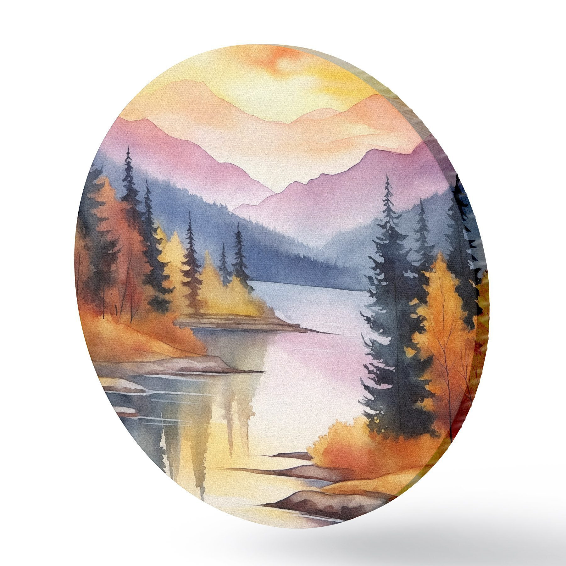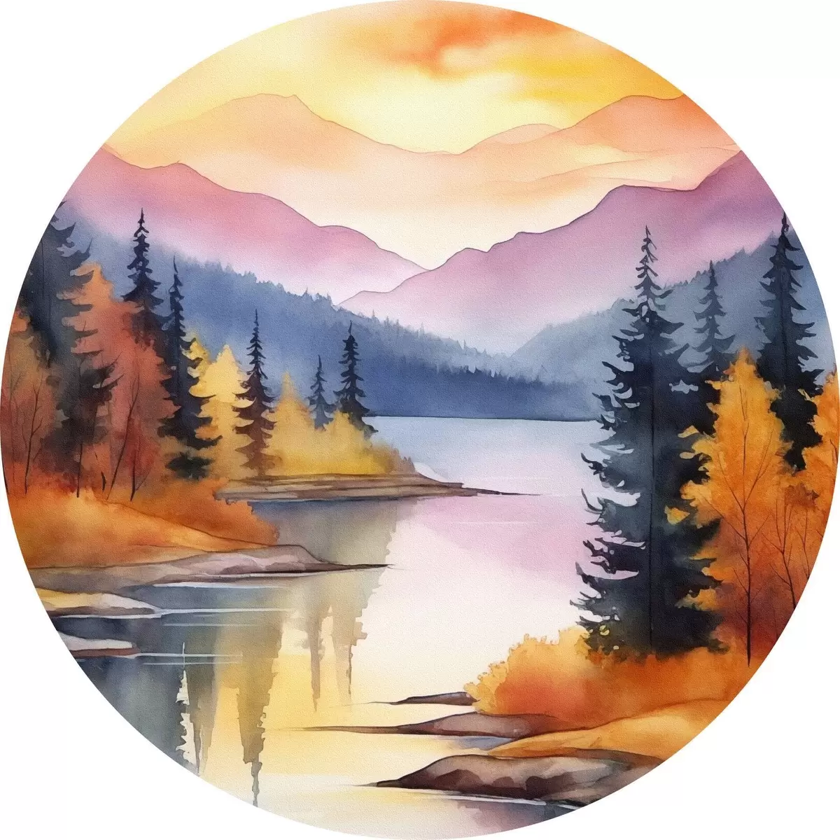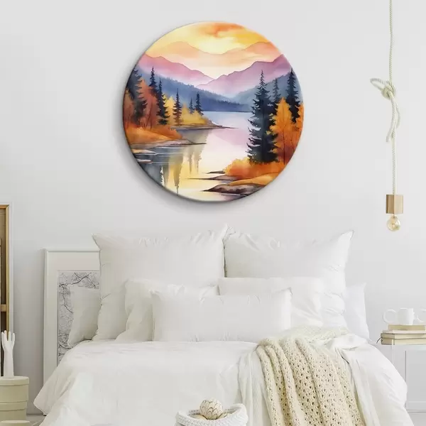 Ronde schilderijen Herfstlandschap aan het meer met een heldere lucht r46155
