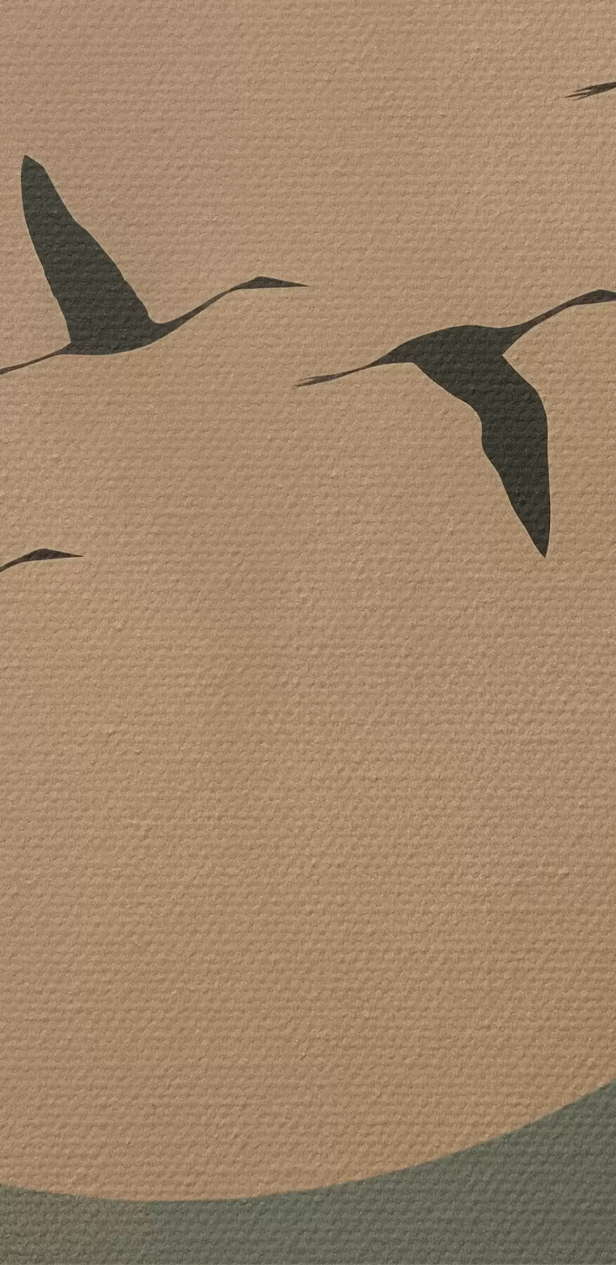 Afbeelding Een zwerm vogels die tegen een grote warme maan vliegt Nr r46162