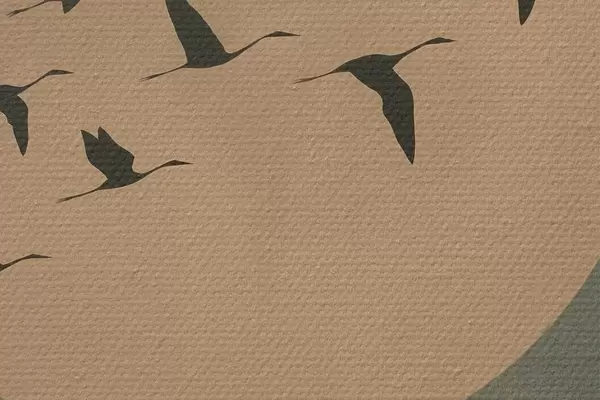 Afbeelding Een zwerm vogels die tegen een grote warme maan vliegt Nr r46162