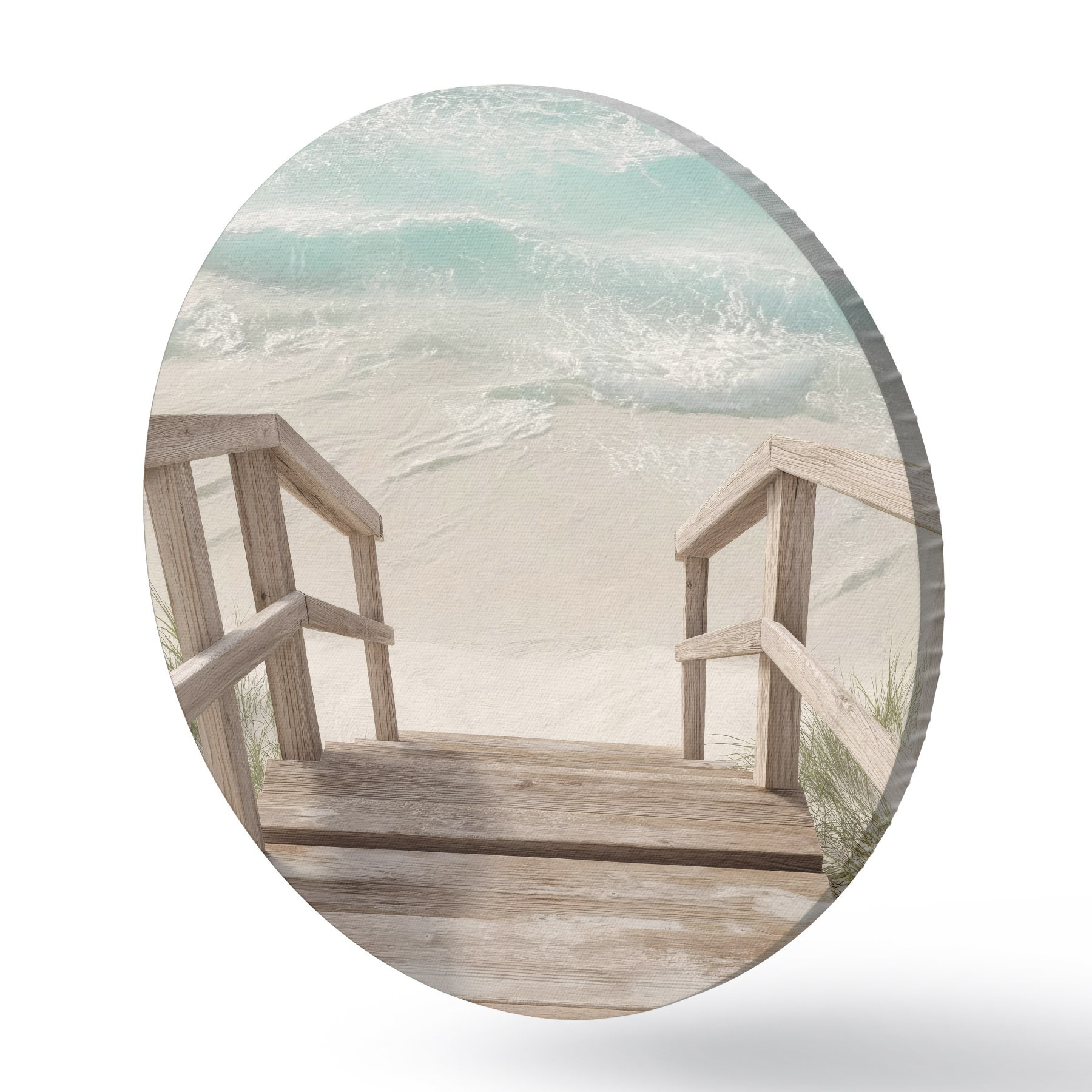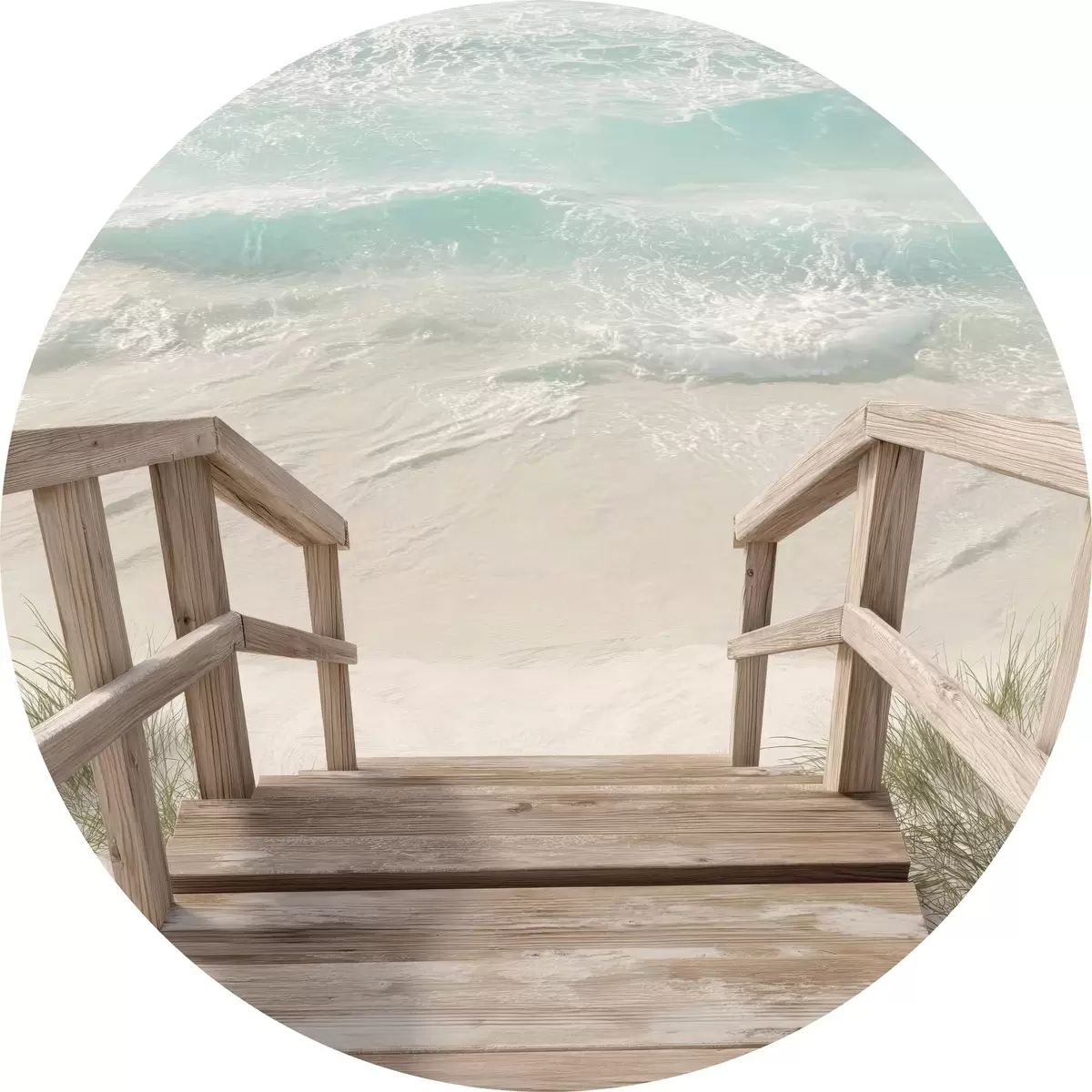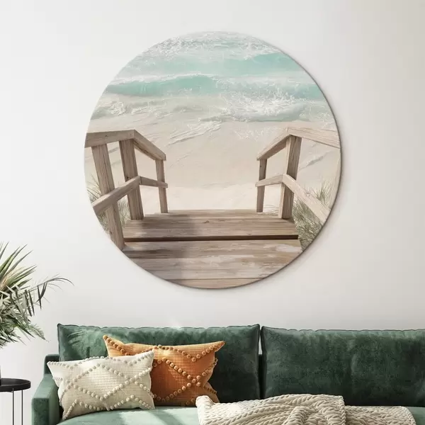 Ronde schilderijen Houten trap die naar een turquoise strand leidt r46163