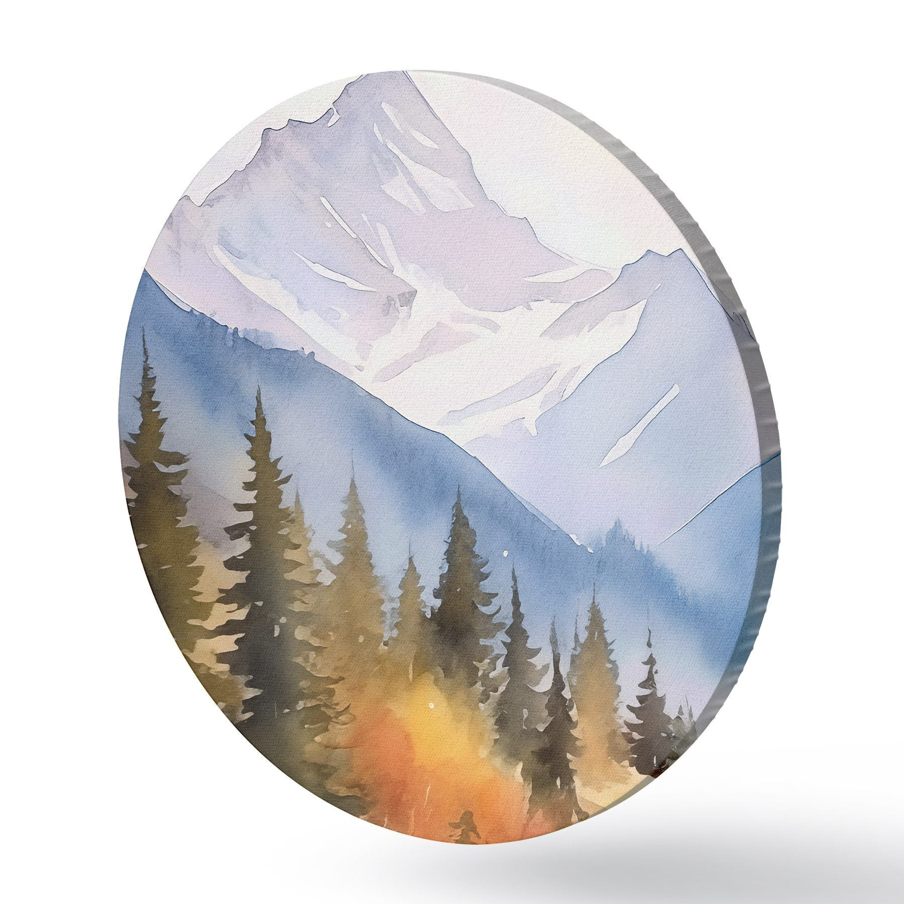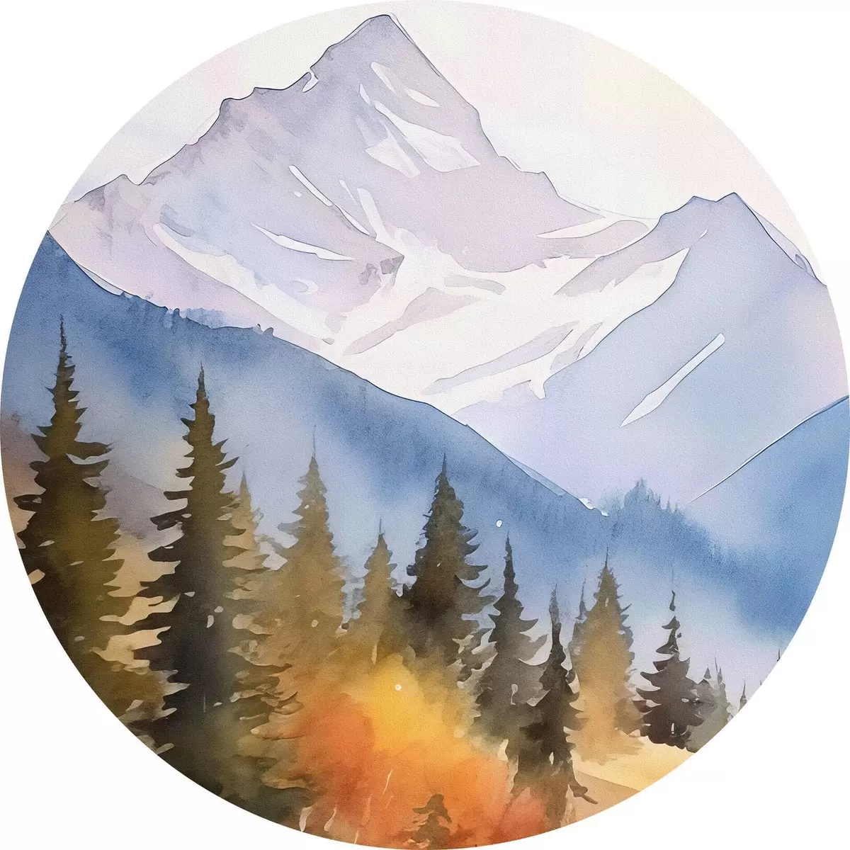 Ronde schilderijen Herfstberglandschap met een rivier en een levendig bos r46187