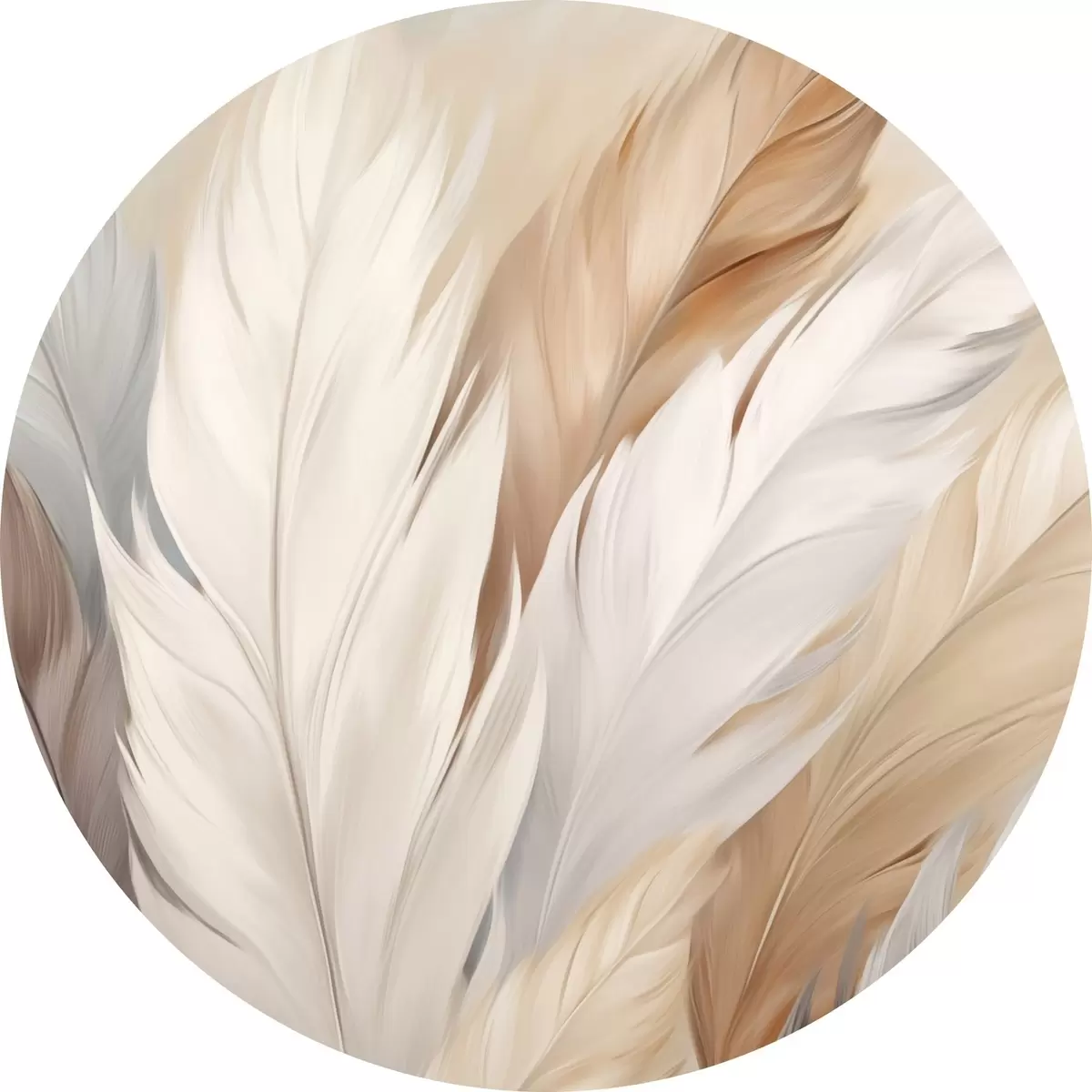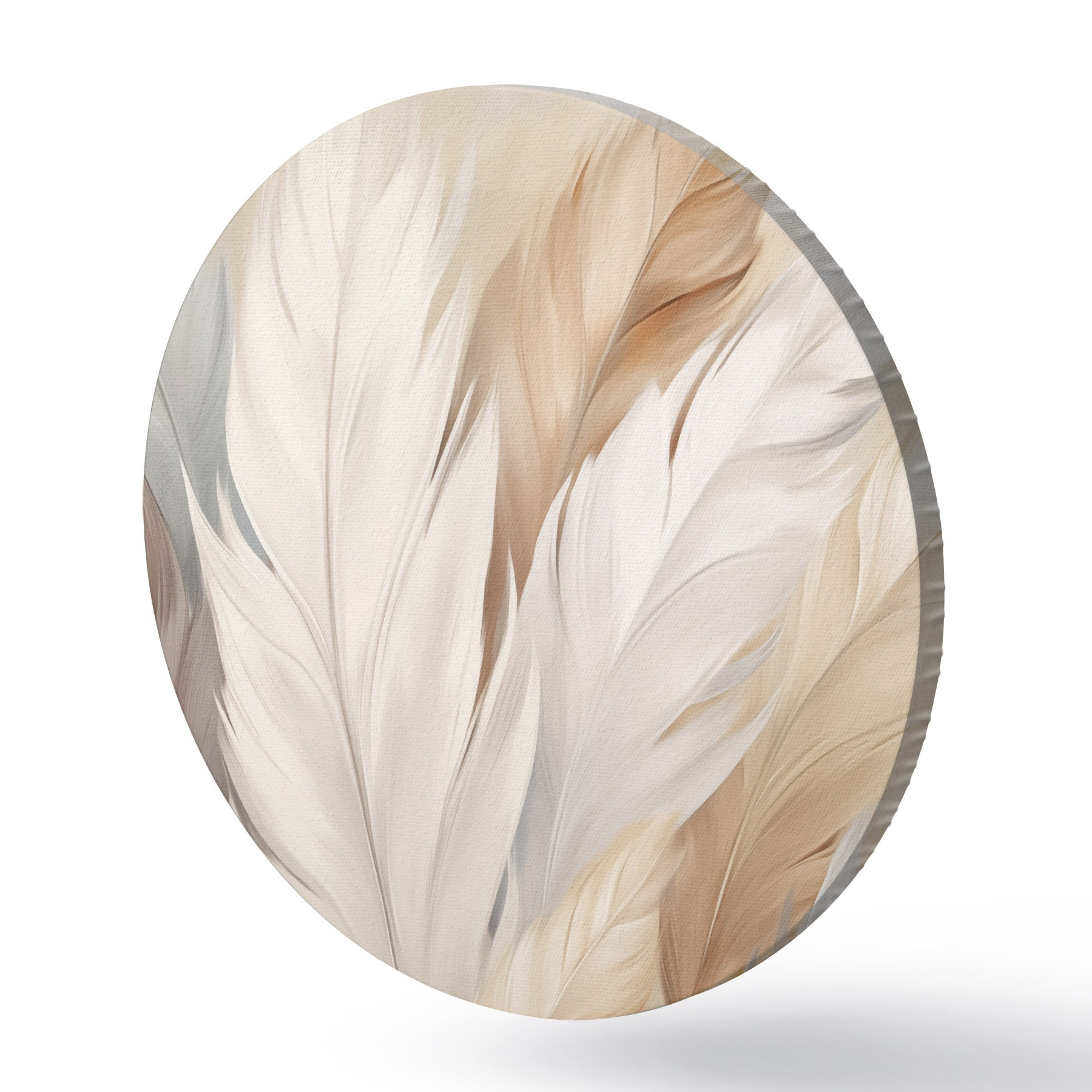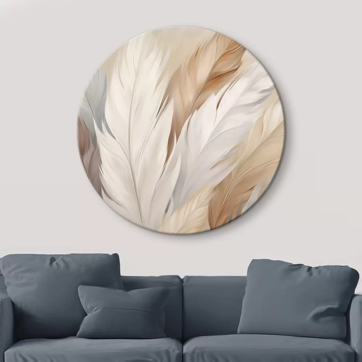 Ronde schilderijen Zachte veren in beige en grijstinten r46190