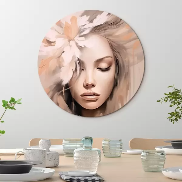 Ronde schilderijen Vrouwelijk portret met een bloem r46218
