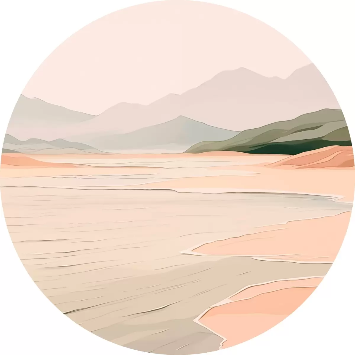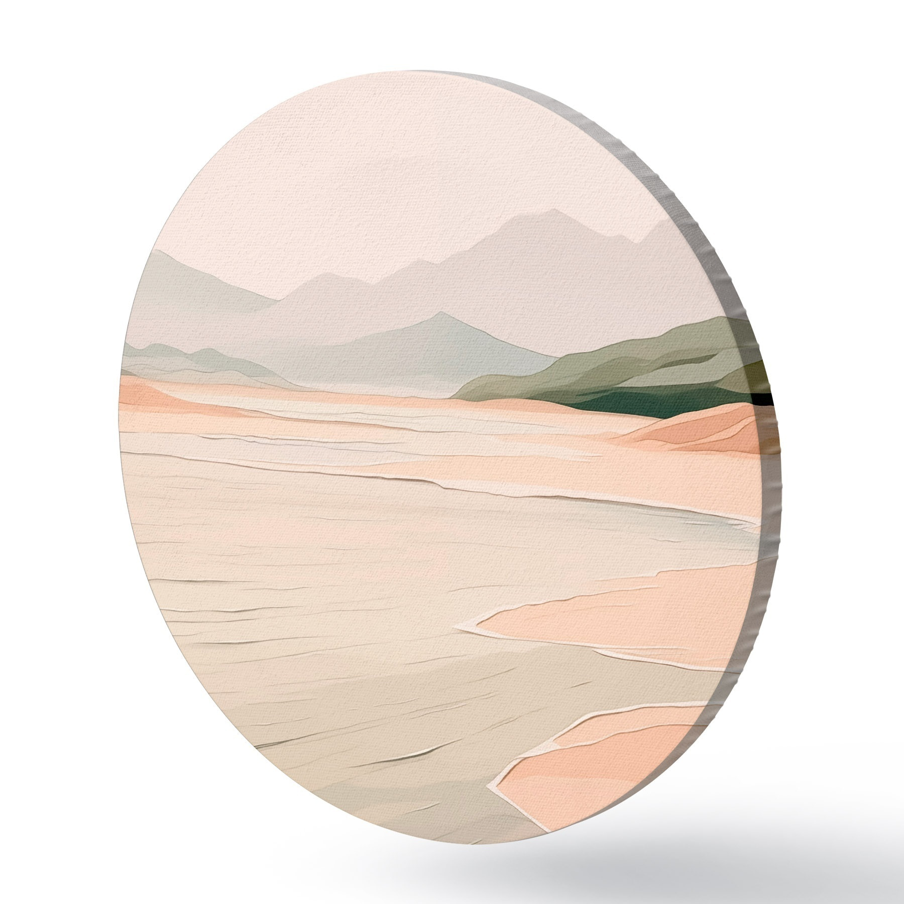 Ronde schilderijen Minimalistisch landschap met bergen en kust r46248