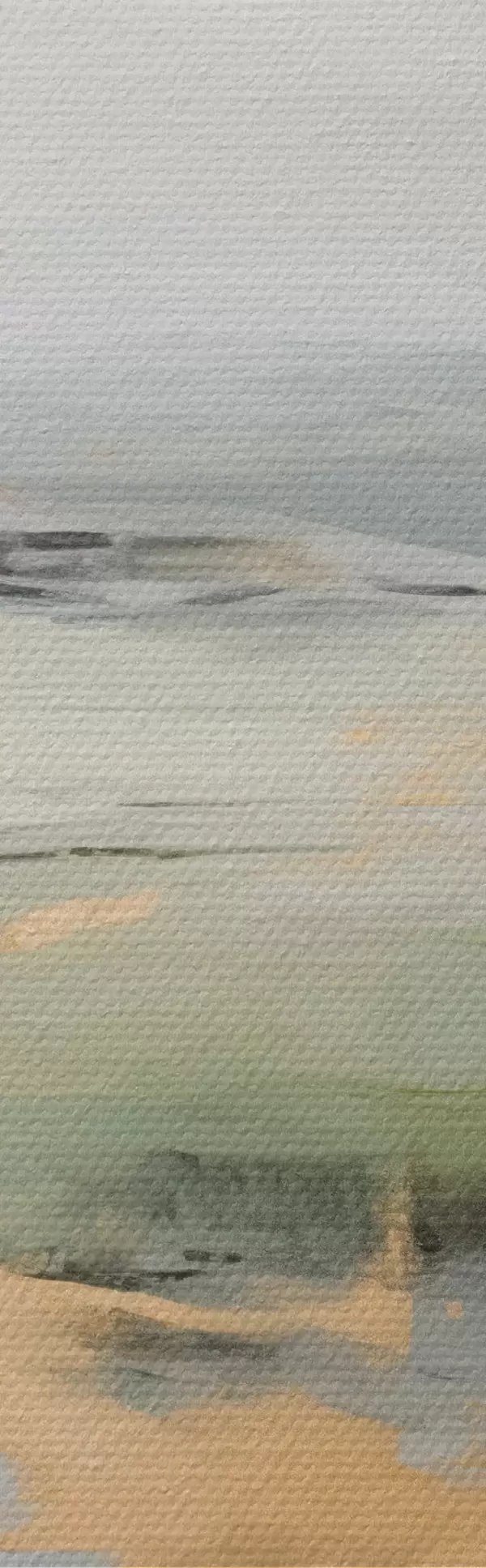 Afbeelding Abstract landschap met gele accenten, een minimalistische compositie van land, water en lucht, met gedempte kleuren Nr r46269
