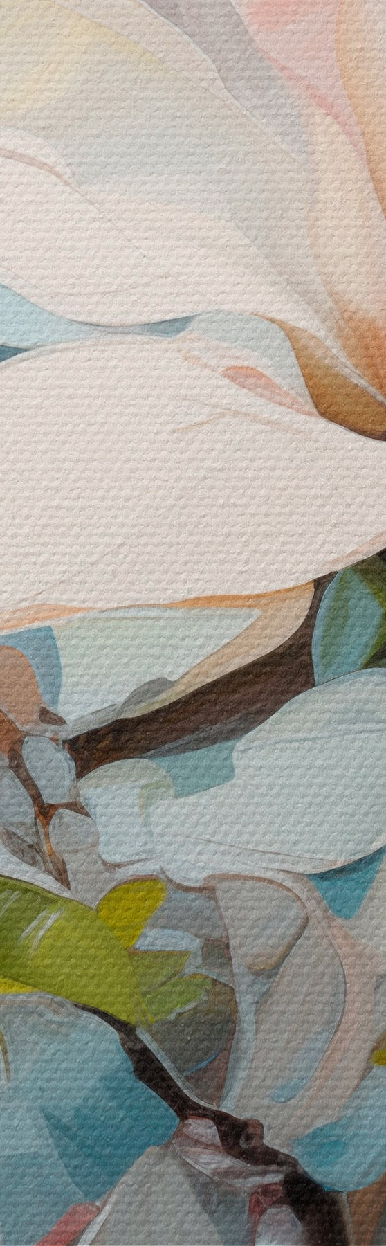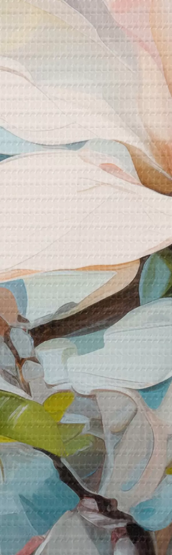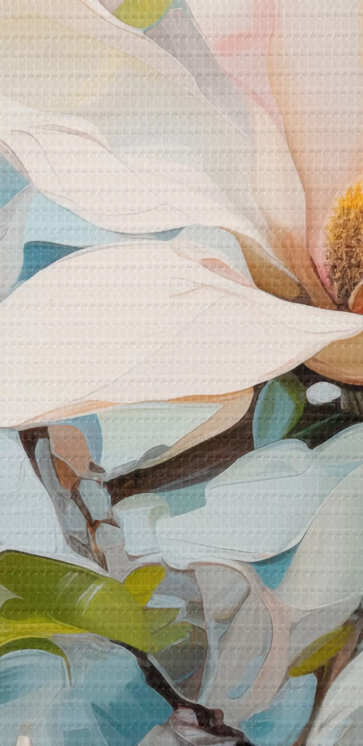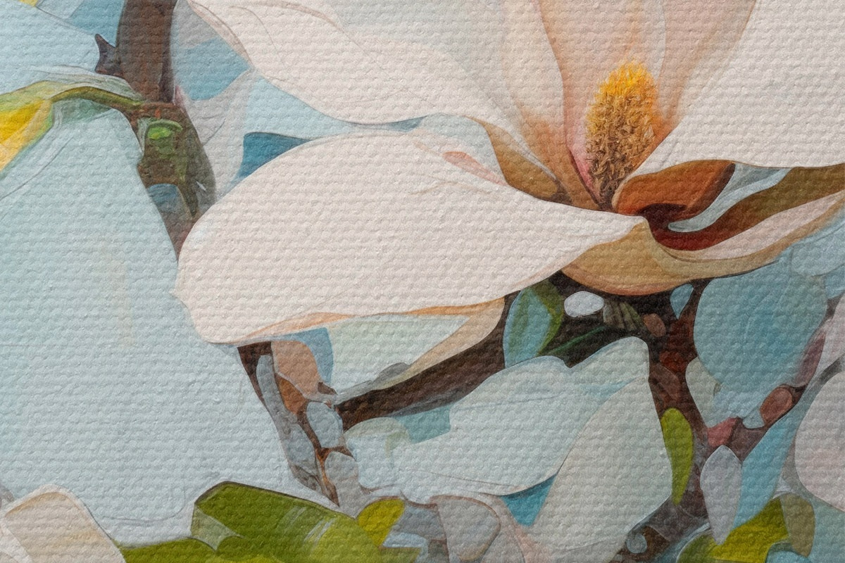 Afbeelding Witte magnoliabloemen, lichtblauwe achtergrond met zachte penseelstreken, olieverfstijl, impasto-textuur Nr r46277