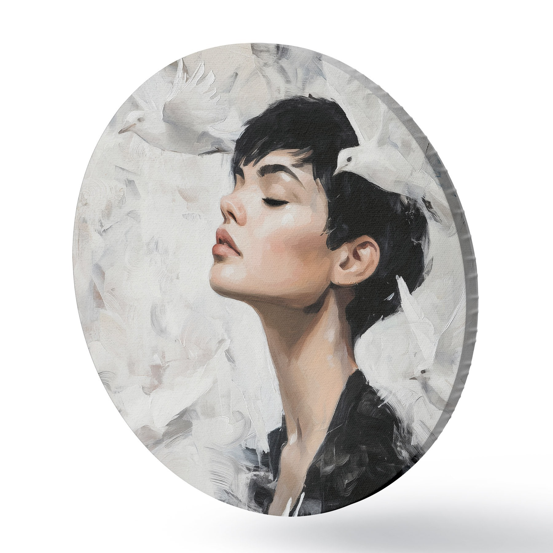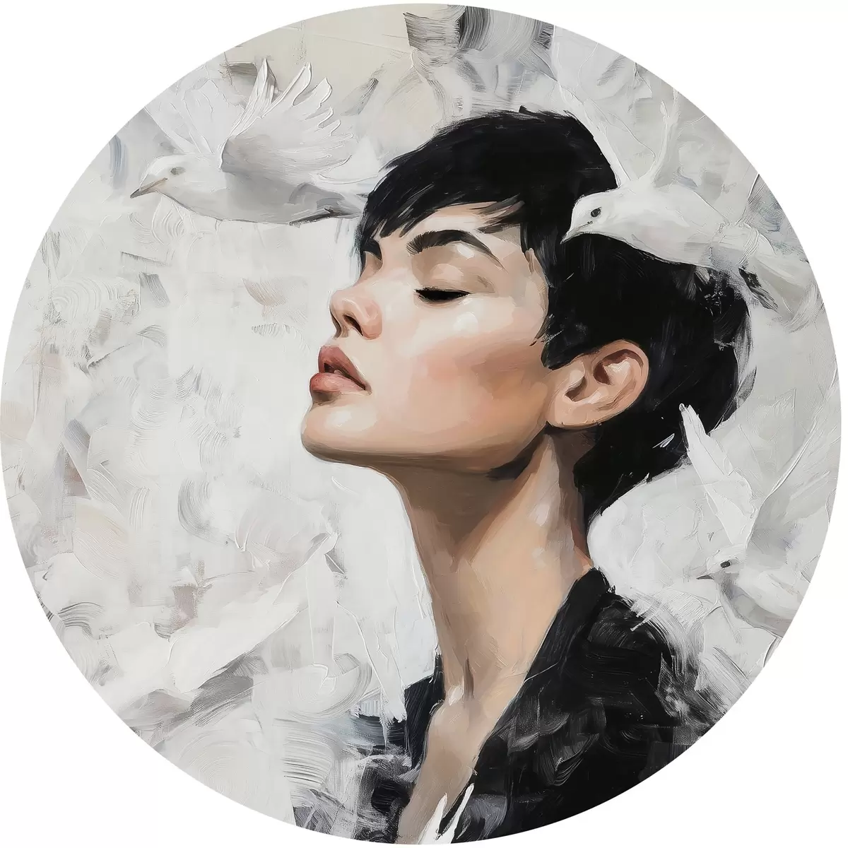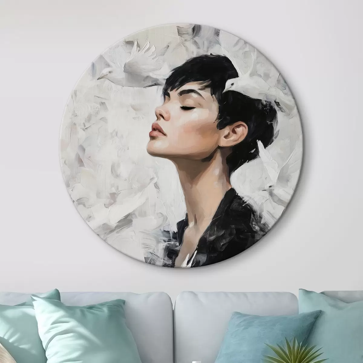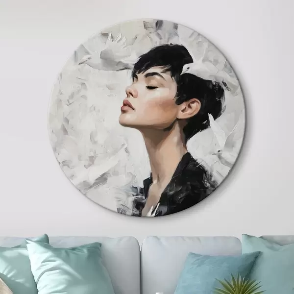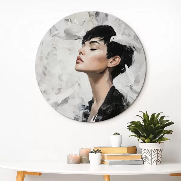 Ronde schilderijen Meisje en vogels r46365