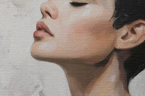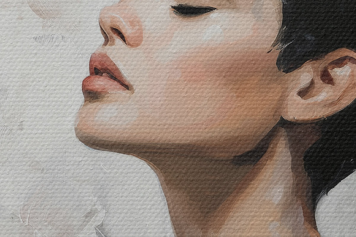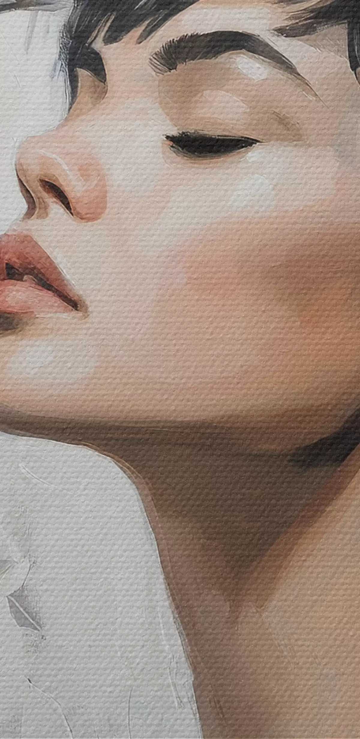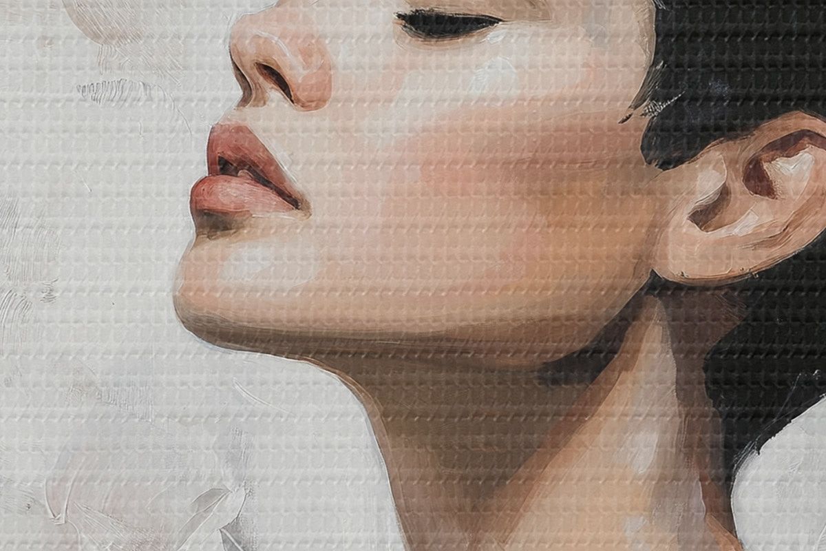 De fijne weving van draden op dit doek lijkt op het oppervlak van professionele schildersdoeken.