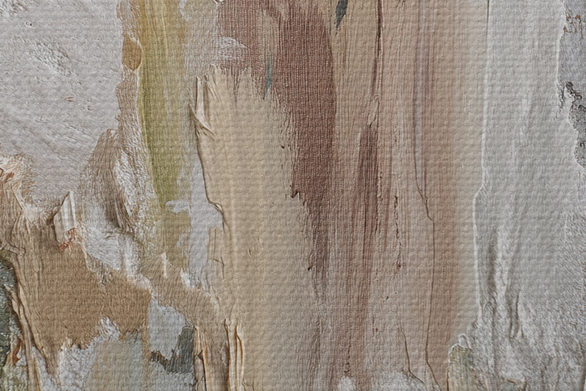 Het schilderij kan voorzichtig worden schoongeveegd met een droge zachte doek of spons; het wordt niet aanbevolen om natte producten te gebruiken. Het gebruik van een vochtige spons is alleen toegestaan als het schilderij gevernist is.