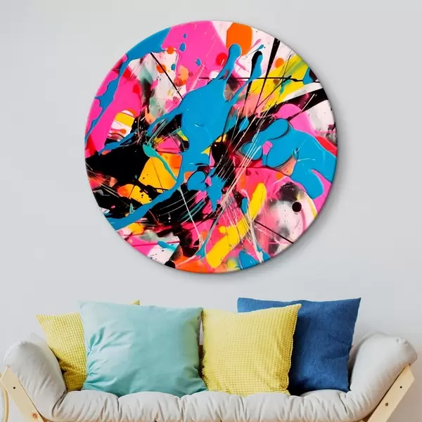Ronde schilderijen Heldere verfspatten. Druppelende abstractie r46478