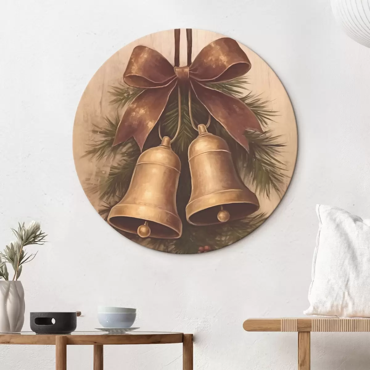 Ronde schilderijen Vintage kerstdecoratie met twee belletjes en een strik r46626