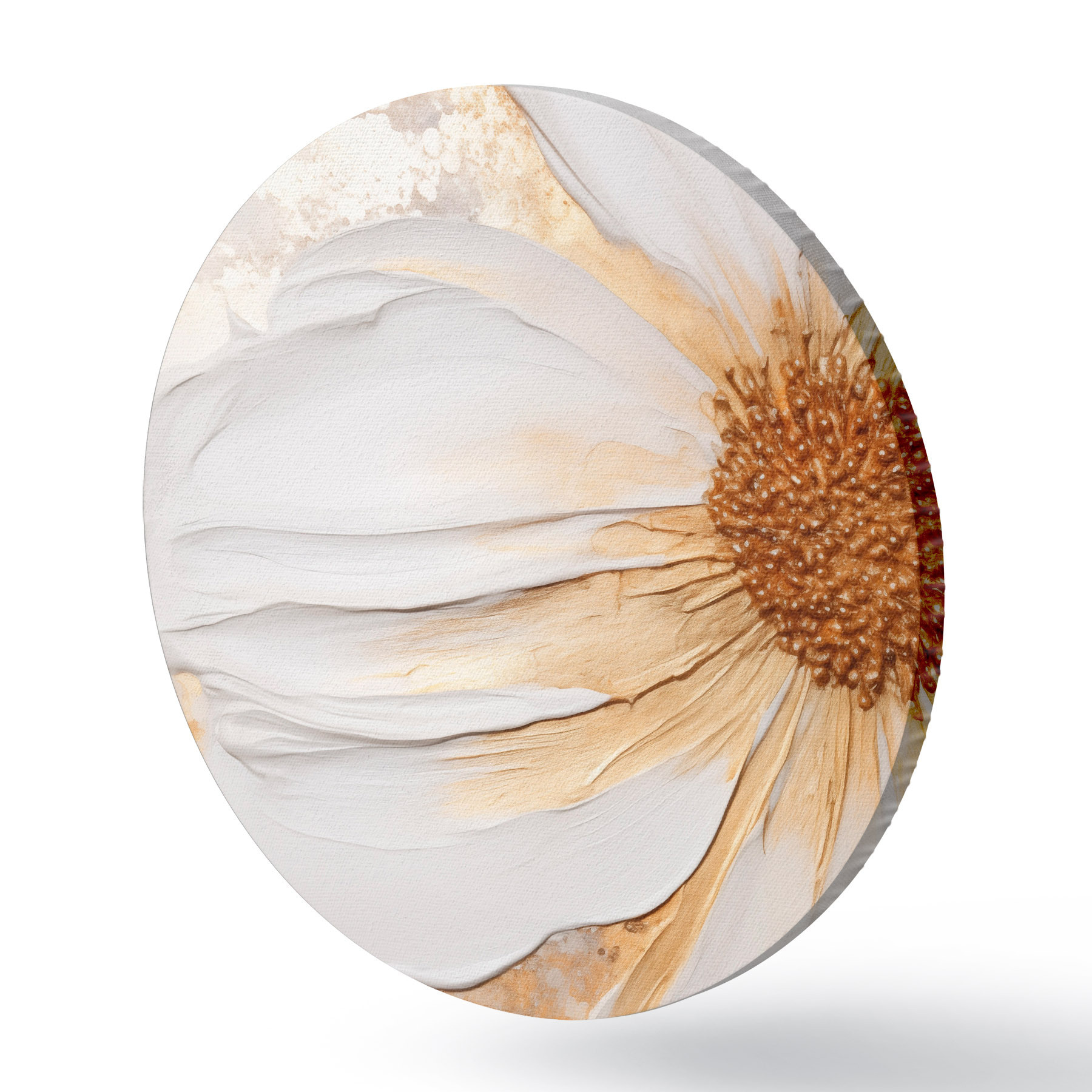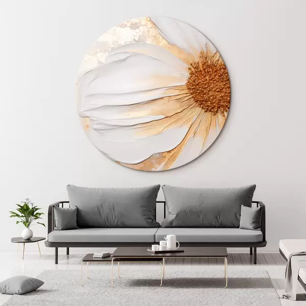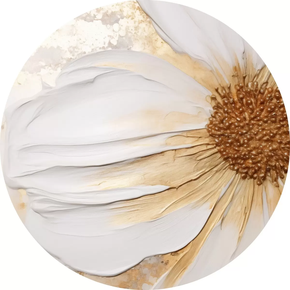 Ronde schilderijen Een witte bloem met delicate bloemblaadjes, een abstracte achtergrond met textuur, elegant, decoratieve kunst r46692