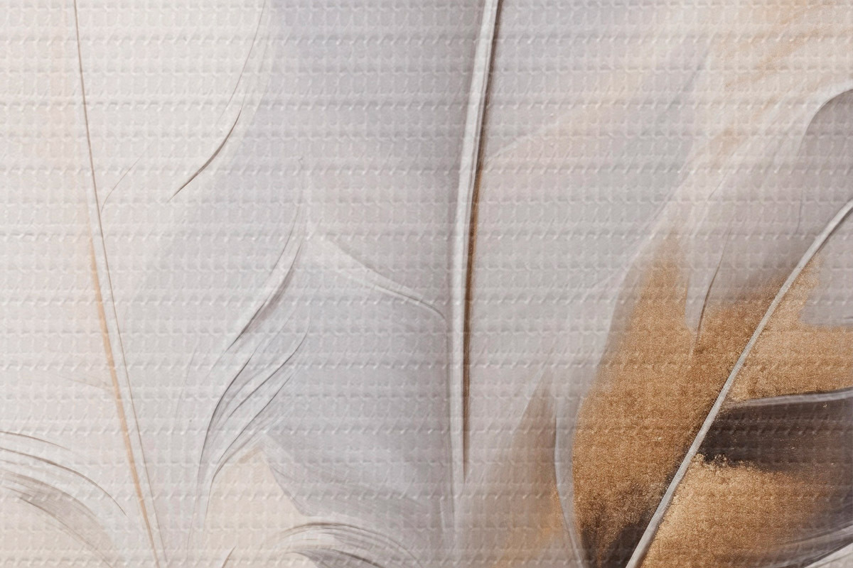 Afbeelding Abstracte veren, omgeven door beige en bruine pluimen, zacht en delicaat, op een lichtbeige achtergrond Nr r46712