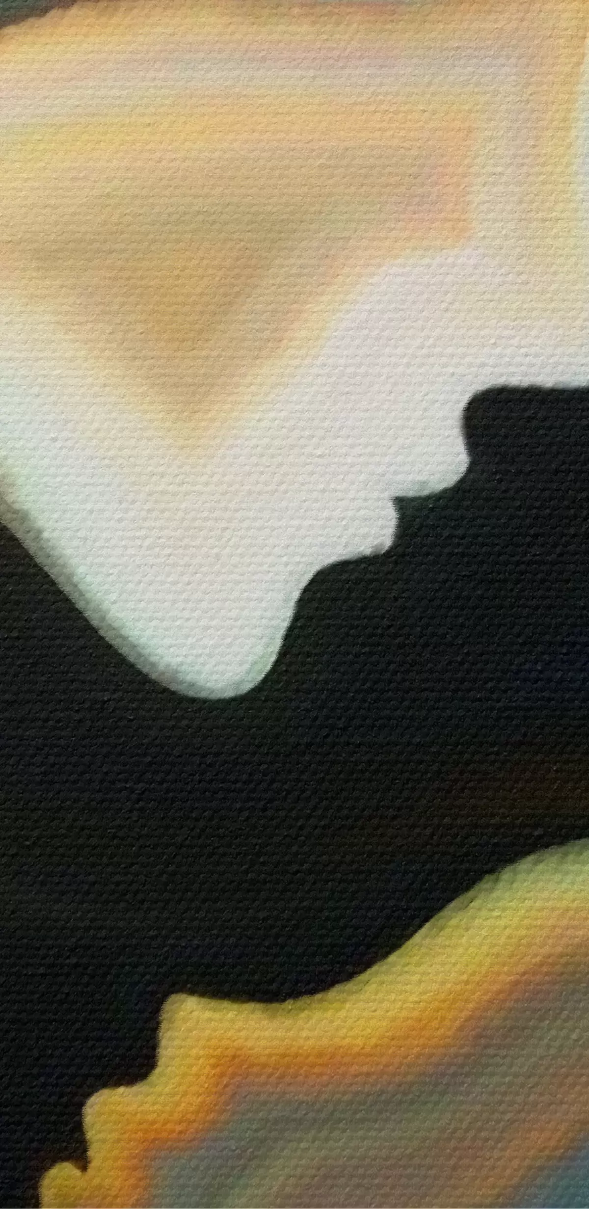 De fijne weving van draden op dit doek lijkt op het oppervlak van professionele schildersdoeken.