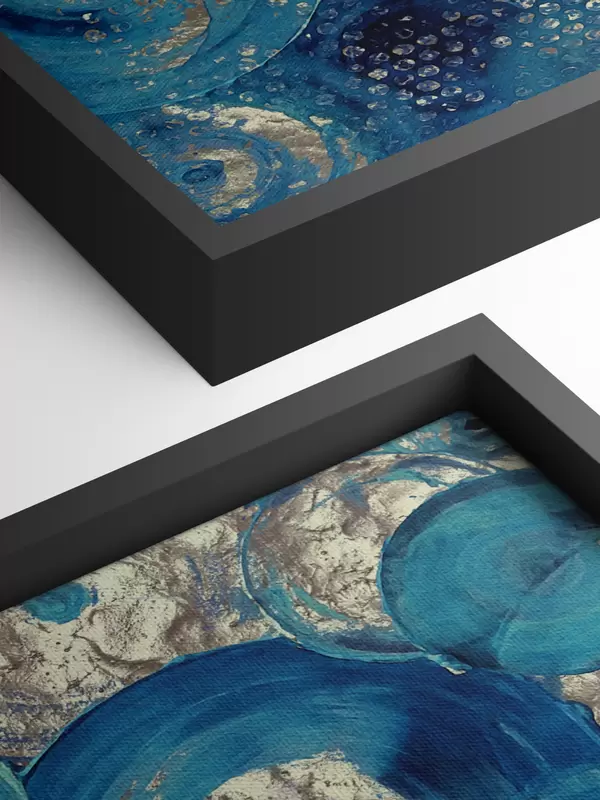 Het schilderij kan direct na ontvangst worden opgehangen. Het schilderij wordt opgespannen op een 2 cm breed houten spieraam.