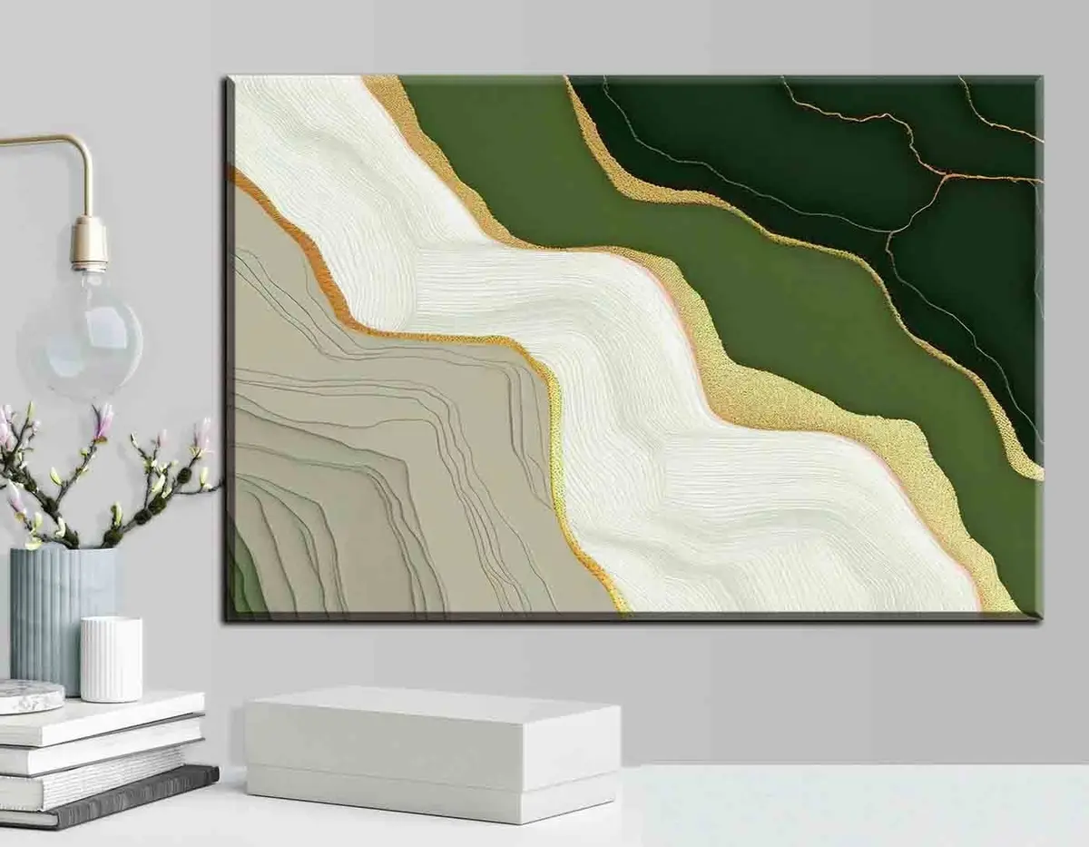 Schilderij Abstract olieverfschilderij met zwarte, witte, groene en grijze verf Art. s35427