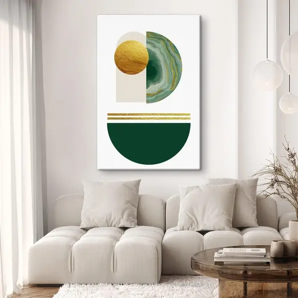 Schilderij Geometrische groene halve cirkels en gele cirkel Art. s35986
