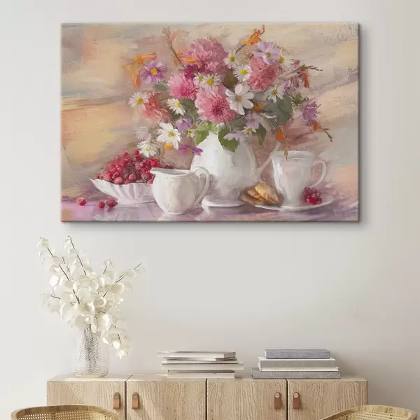 Schilderij Bloemen, planten en drinkgerei Art. s15070