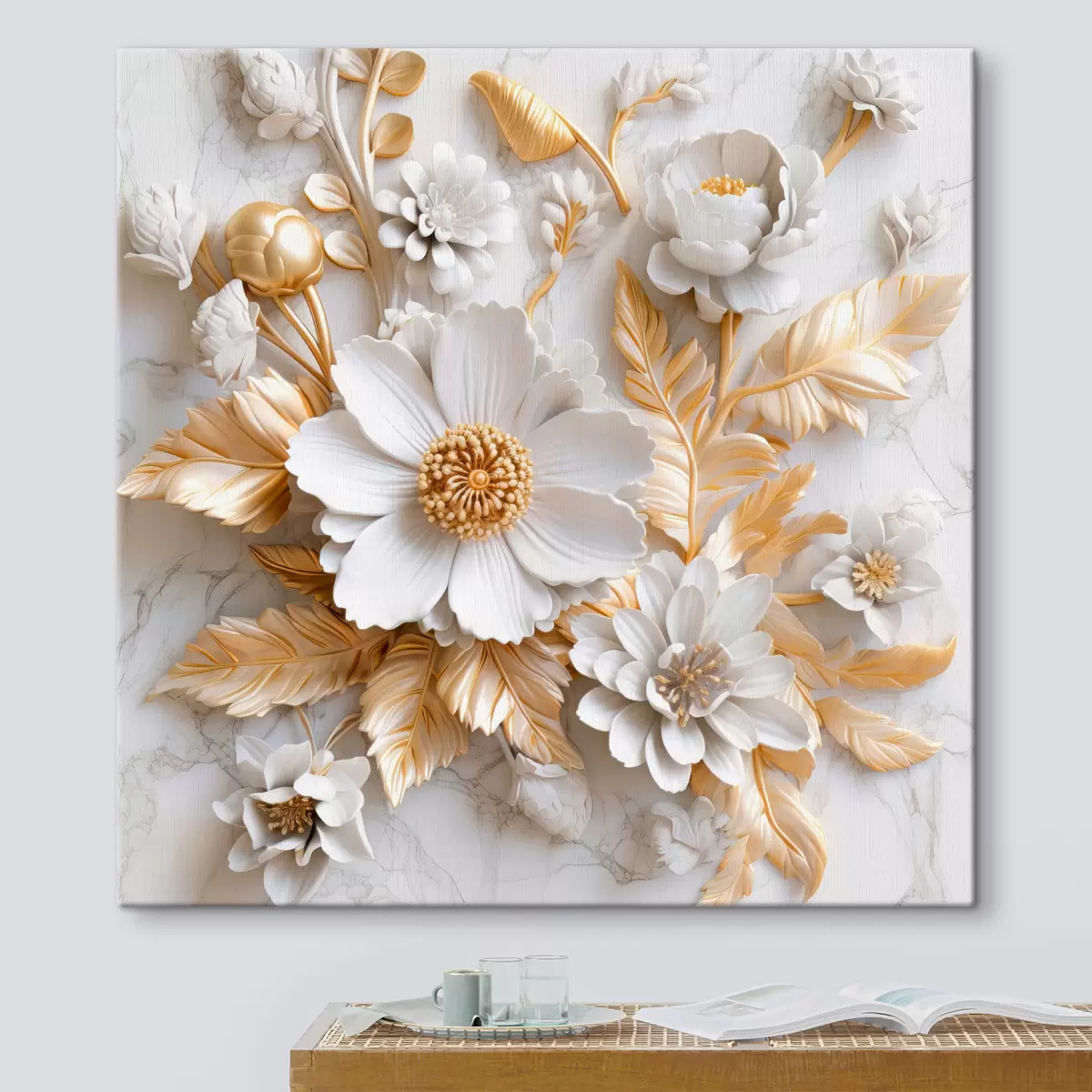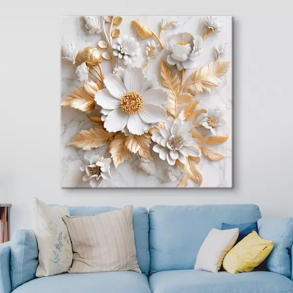 Schilderij 3D bloemen op wit marmer Art. s32778
