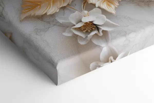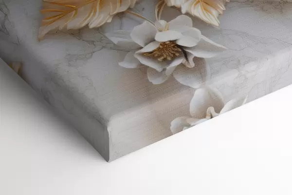 Schilderij 3D bloemen op wit marmer Art. s32778