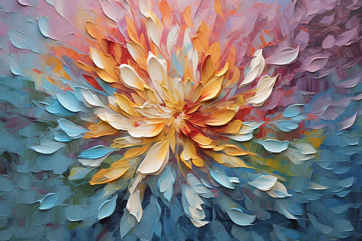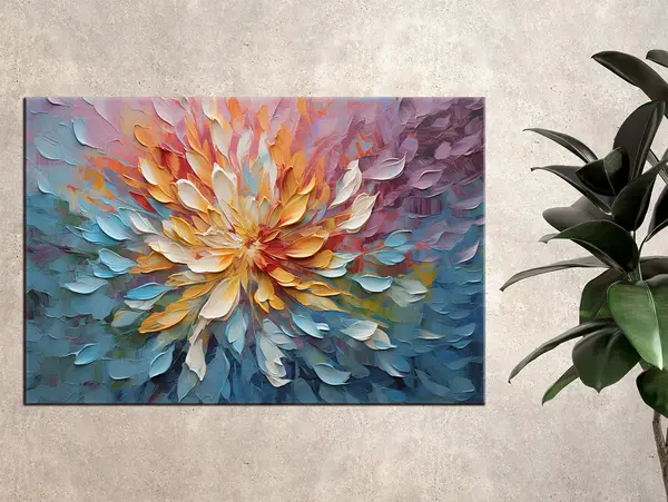 Het schilderij kan direct na ontvangst worden opgehangen. Het schilderij wordt opgespannen op een 2 cm breed houten spieraam.