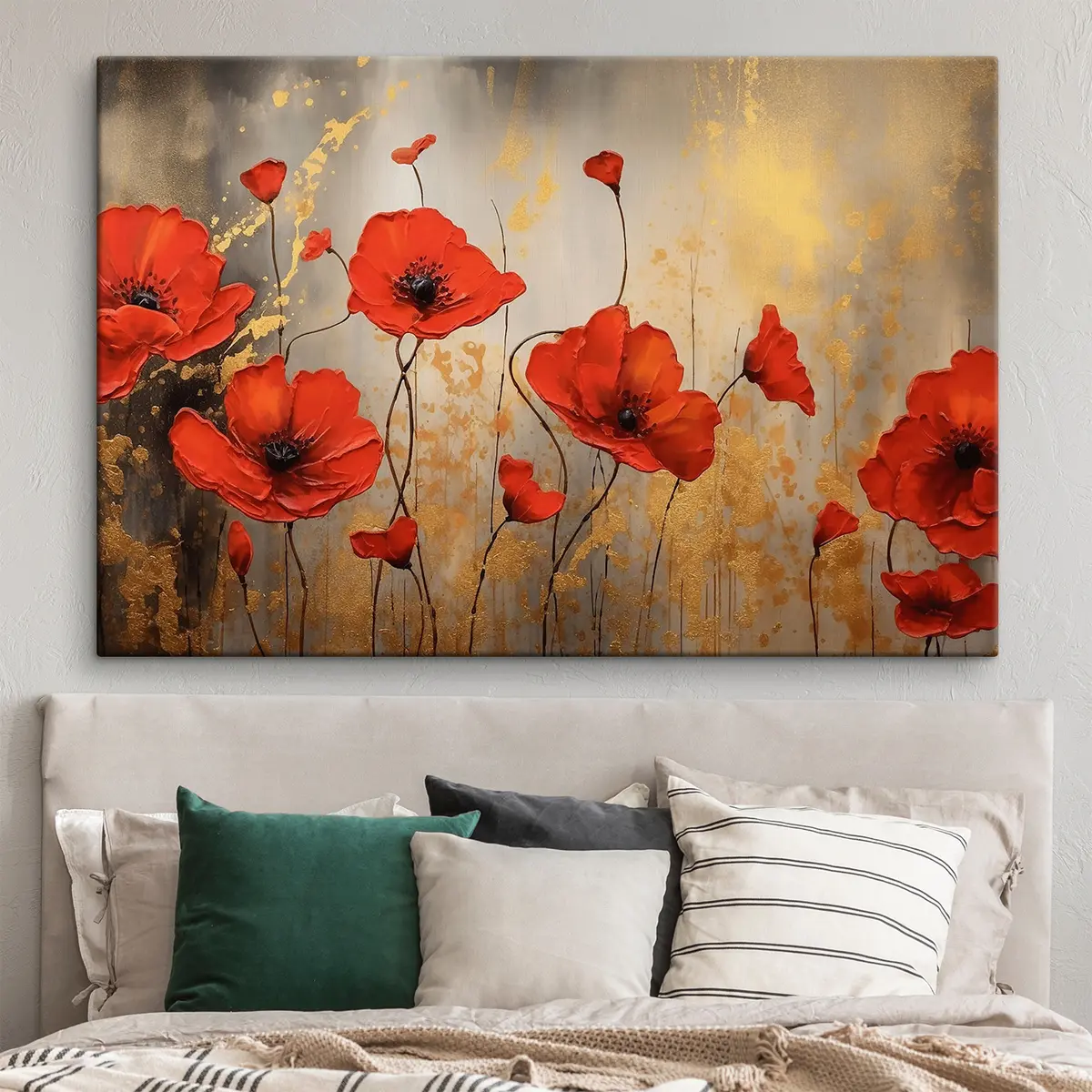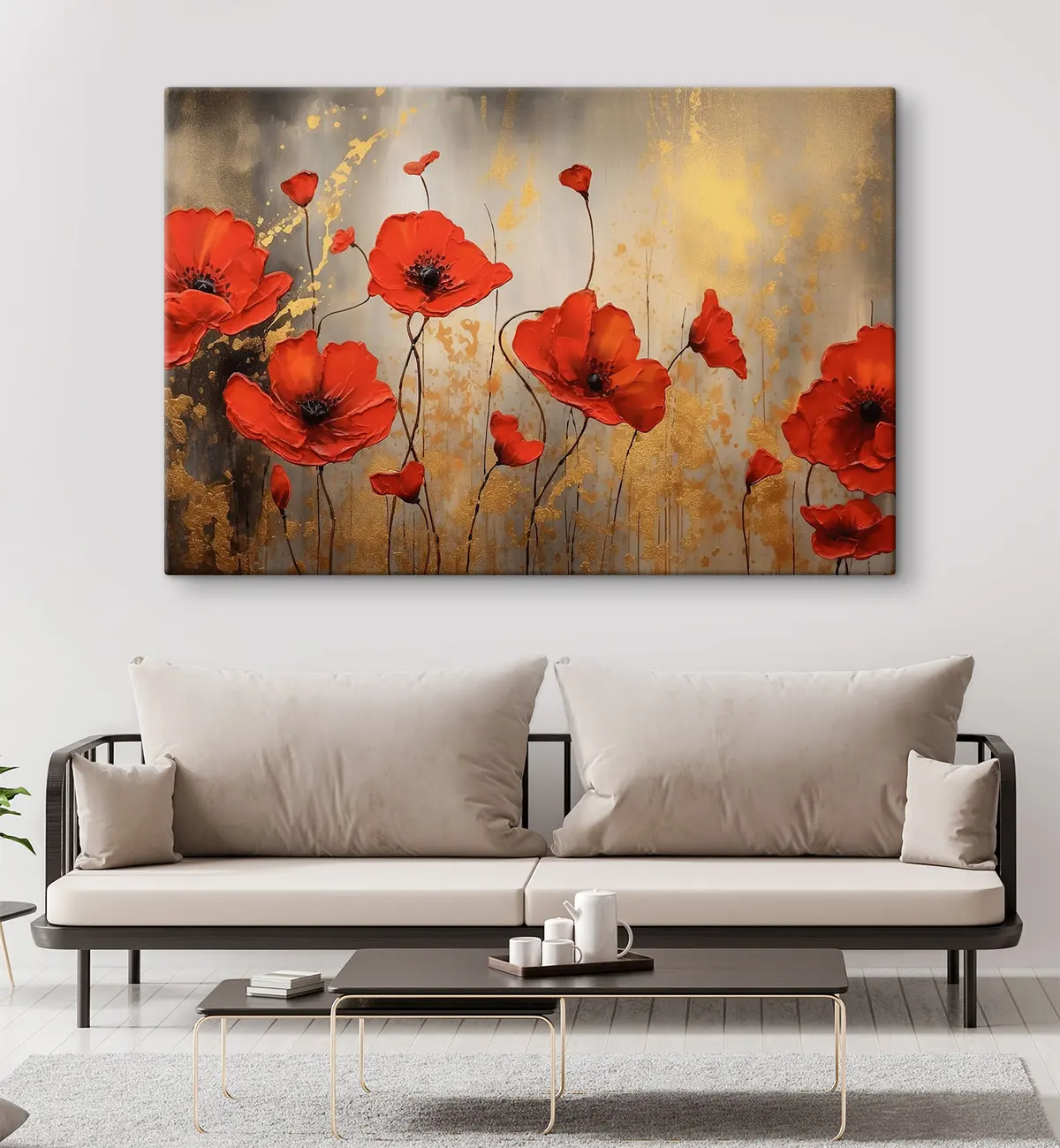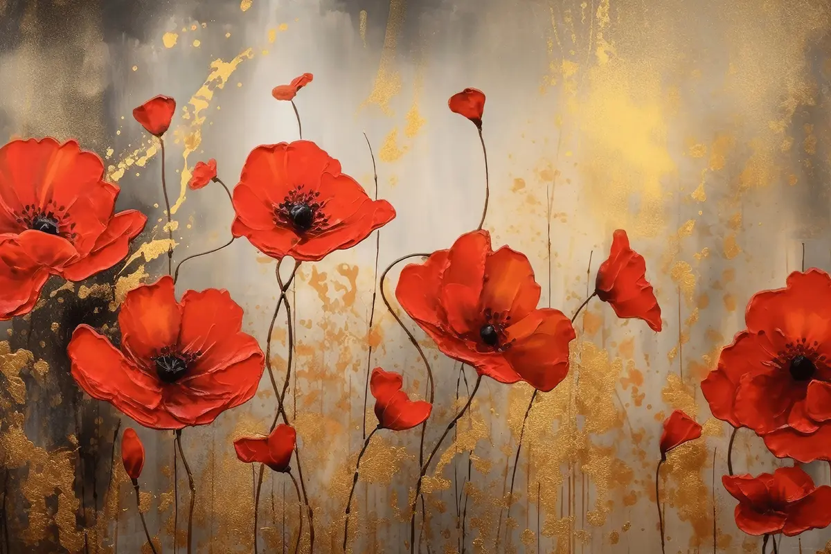 Schilderij Klaprozen op een bruine abstracte achtergrond Art. s35515