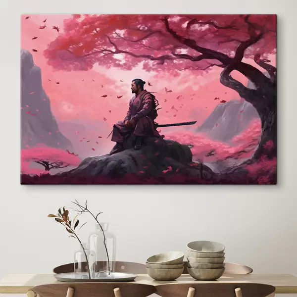 Schilderij Geschilderde samurai onder kersenbloesems Art. s33526