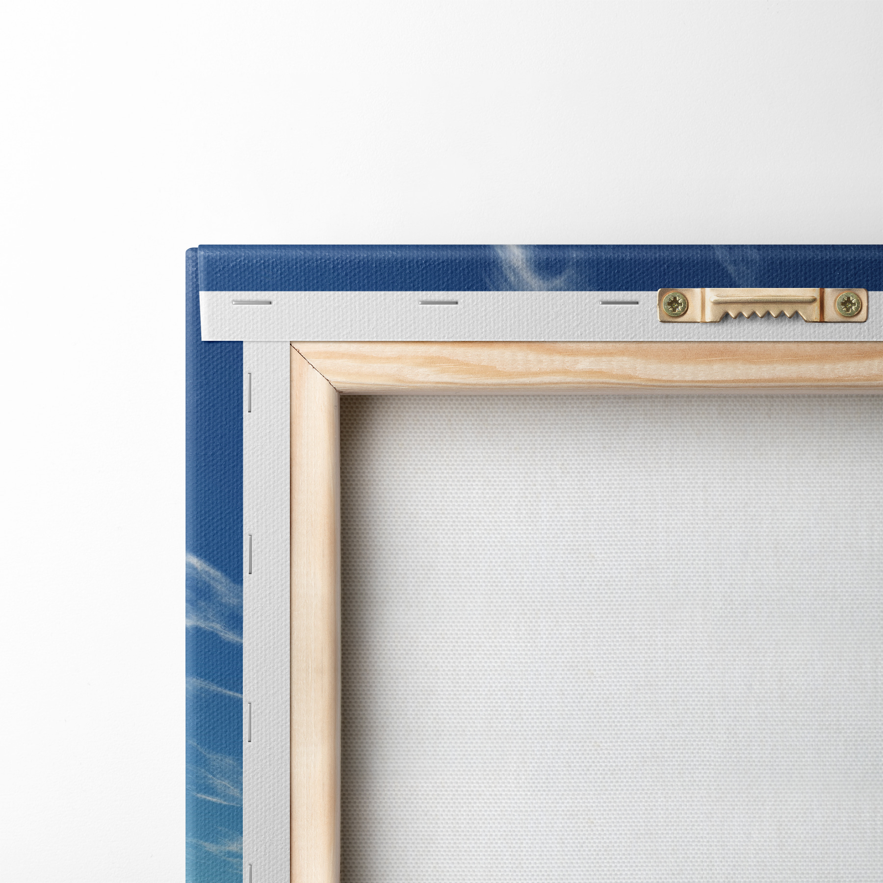 We verkopen foto's op spieraam - dat is een houten frame waarop het doek is opgespannen. Deze foto hoef je niet in te lijsten; je kunt hem direct aan de muur hangen.