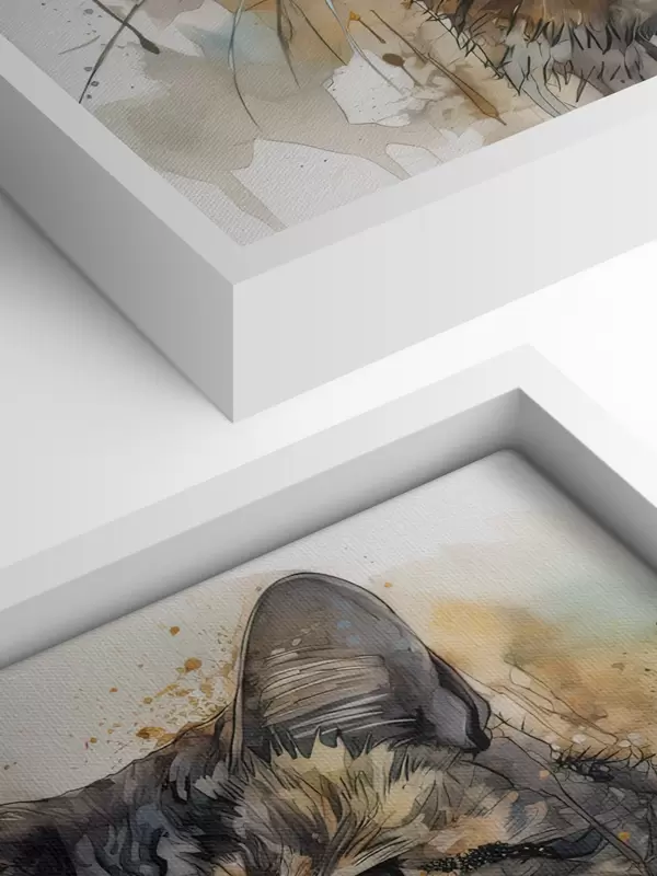 Er zijn drie soorten materiaal te bestellen: Economic Canvas - een dicht en duurzaam materiaal voor digitaal printen, identiek aan schildersdoek, waterdicht oppervlak, realistische weergave van details, materiaal met gemiddelde korrel. Premium Canvas - de textuur lijkt op die van schildersdoek (verweven kleine draden). Zachte, gedetailleerde reproductie van de afbeelding op een mat oppervlak. Eco-Premium - hoogwaardige 100% katoenen stof. Dankzij de natuurlijke katoenvezels is het materiaal duurzaam en slijtvast. Uitstekende kleurweergave en detail.