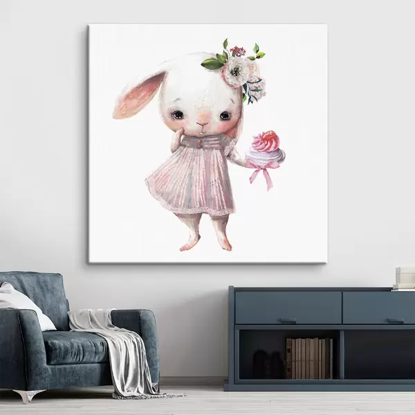 Schilderij Schattig konijntje met een zoete traktatie Art. s35046