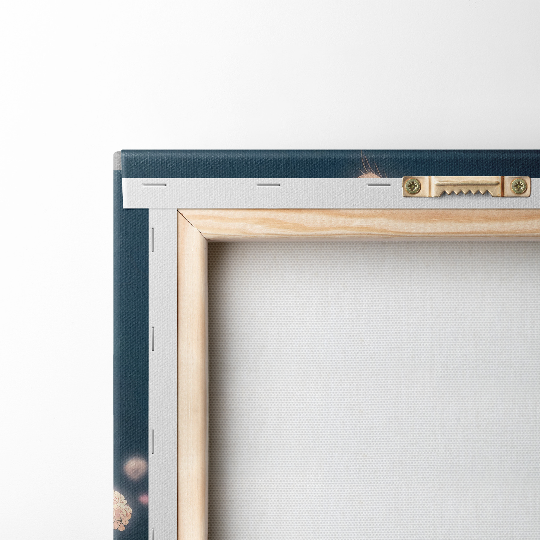 Om het doek op te spannen op spielatten zonder de afbeelding te beschadigen, gebruiken we gespiegeld beeld.