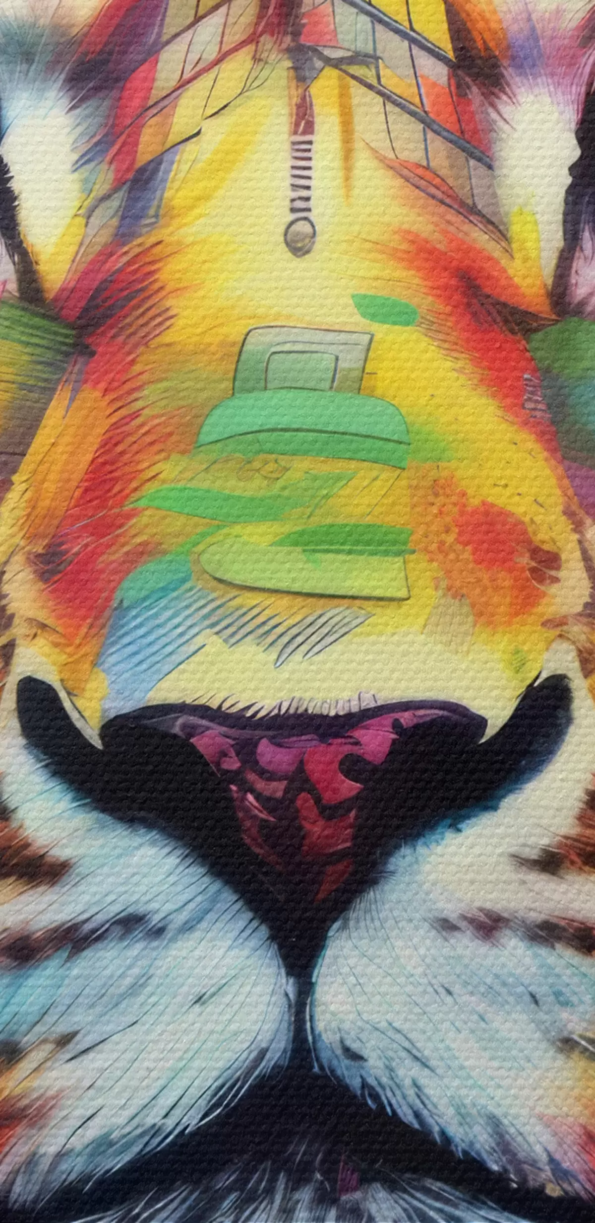 Het schilderij kan direct na ontvangst worden opgehangen. Het schilderij wordt opgespannen op een 2 cm breed houten spieraam.