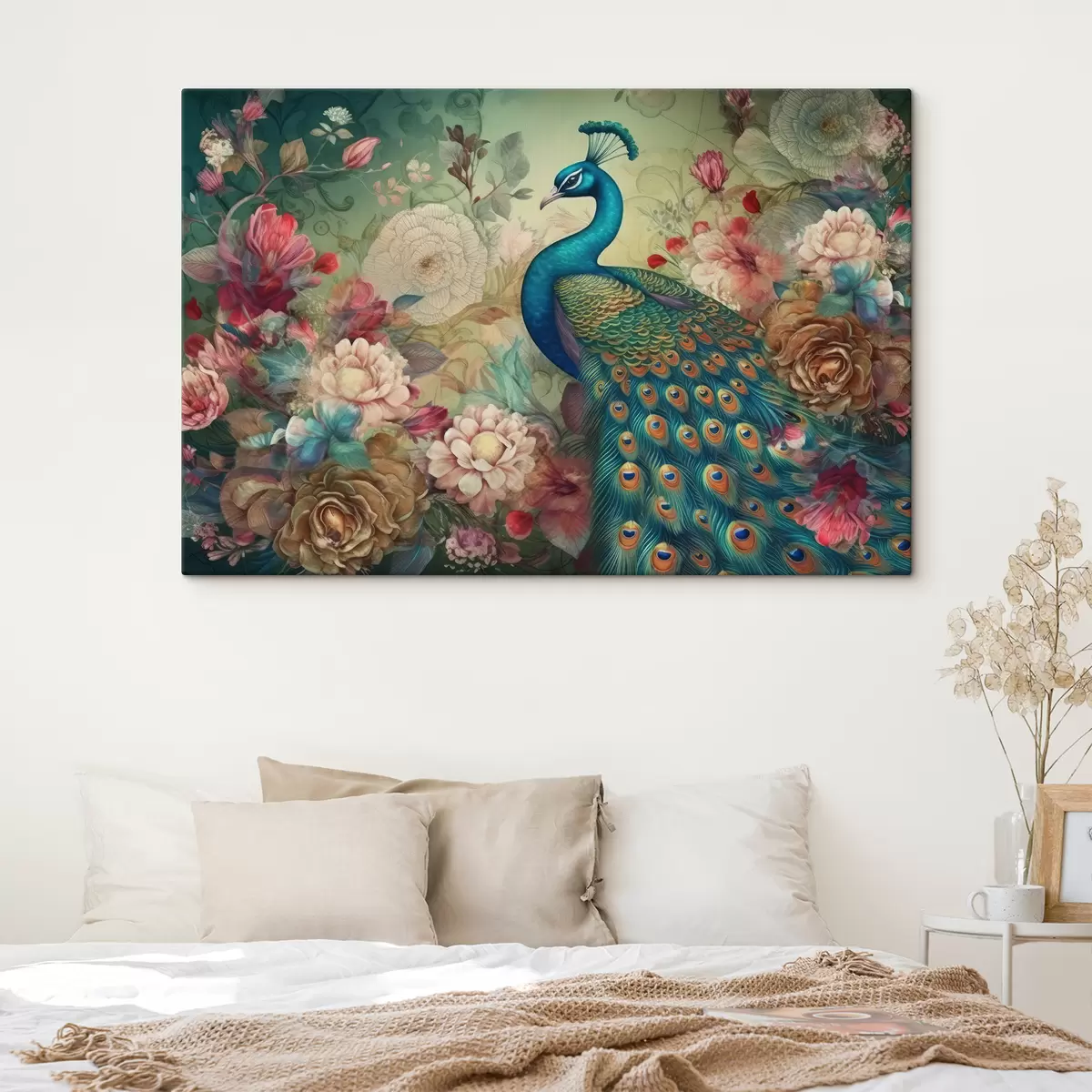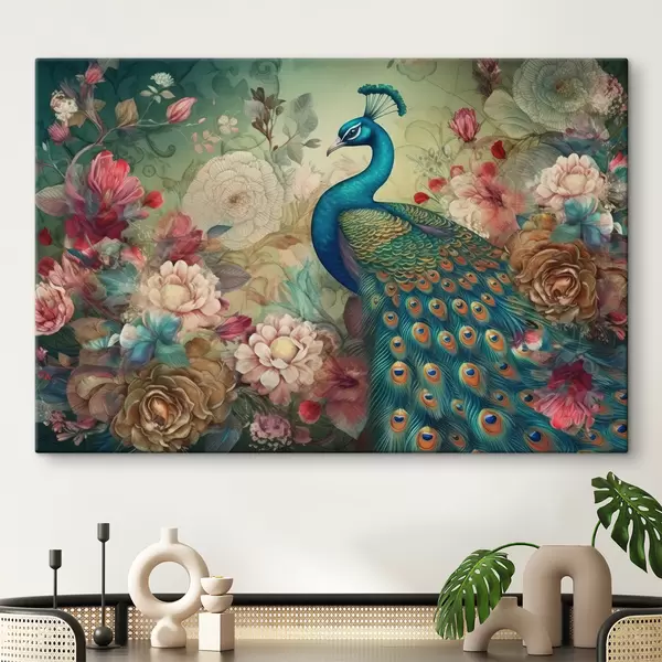 Schilderijen Pauw in bloemen in vintage stijl s34869
